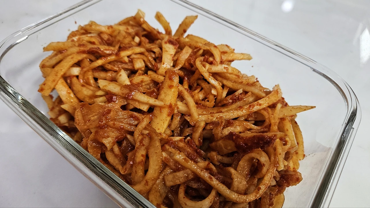 아삭해야 하고 달달하면서 칼칼한 맛도 있어야 하죠. 특히 제가 좋아하는 평양냉면집에서 주는 무생채를 정말 좋아합니다. 거기 가면 냉면 대신 그것만 주야장천 먹죠.