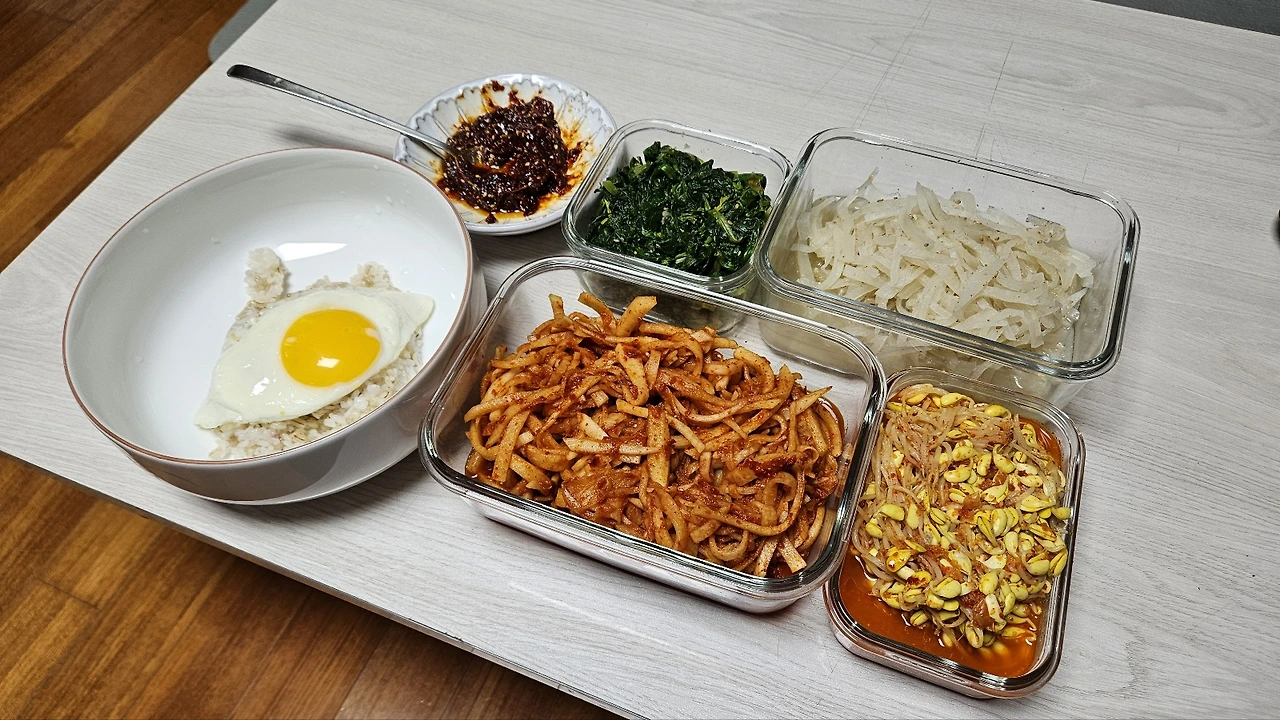 생애 최초 무생채를 급하게 만든 기념으로 메뉴 또한 급하게 비빔밥으로 정했습니다. 어른들은 말할 필요도 없고 아이들도 정말 건강하고 맛있는 한 끼를 먹었죠.