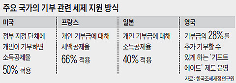 현재 우리나라 세제혜택은 국민들의 기부를 장려한다고 보기에 어렵습니다. 되려 많이 베푸는 사람이 손해를 보게 만드는 구조라고 해도 과언이 아니죠.