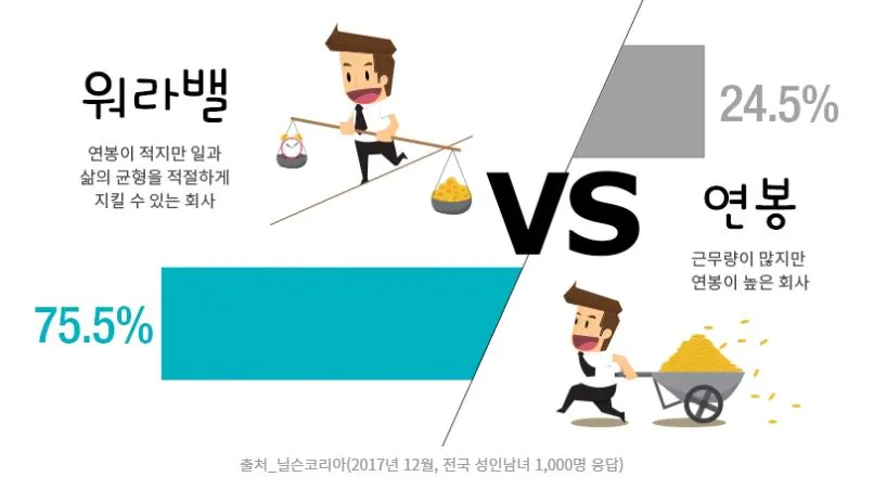 10여 년 전 제가 입사한 지 얼마 되지 않았을 때였습니다. 우리 회사 CEO 셨던 김ㅇㅇ 사장님께서 이런 명언을 남기셨던 적이 있습니다. "일(승진)과 가정 두 마리 토끼는 절대 잡을 수 없다. 그렇기 때문에 하나는 포기해야 한다" 회사 내부 회의에서 하셨던 말씀이었기에 언론에 나오지는 않았지만 내부적으로는 상당히 회자되었던 이야기였습니다. 그 시절만 해도 가정은 좀 포기하고 일에 모든 것을 바쳐야 성공할 수 있다는 말은 결코 책잡힐 내용이 되지 못했습니다.