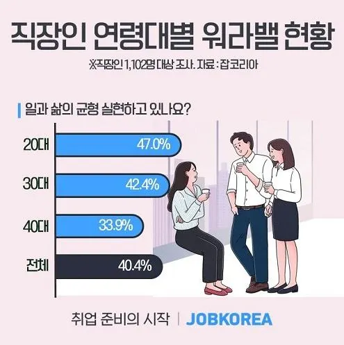 나이가 들어갈수록 워라밸 현황이 낮아진다는 설문 결과 역시 다양한 원인이 있겠지만 이런 현실들도 반영된 것이 아닐까 하는 생각이 듭니다. 아무래도 일과 인력에 책임을 져야 하는 관리자 역할의 비율이 연령대가 올라감과 동시에 높기 때문일 것입니다.