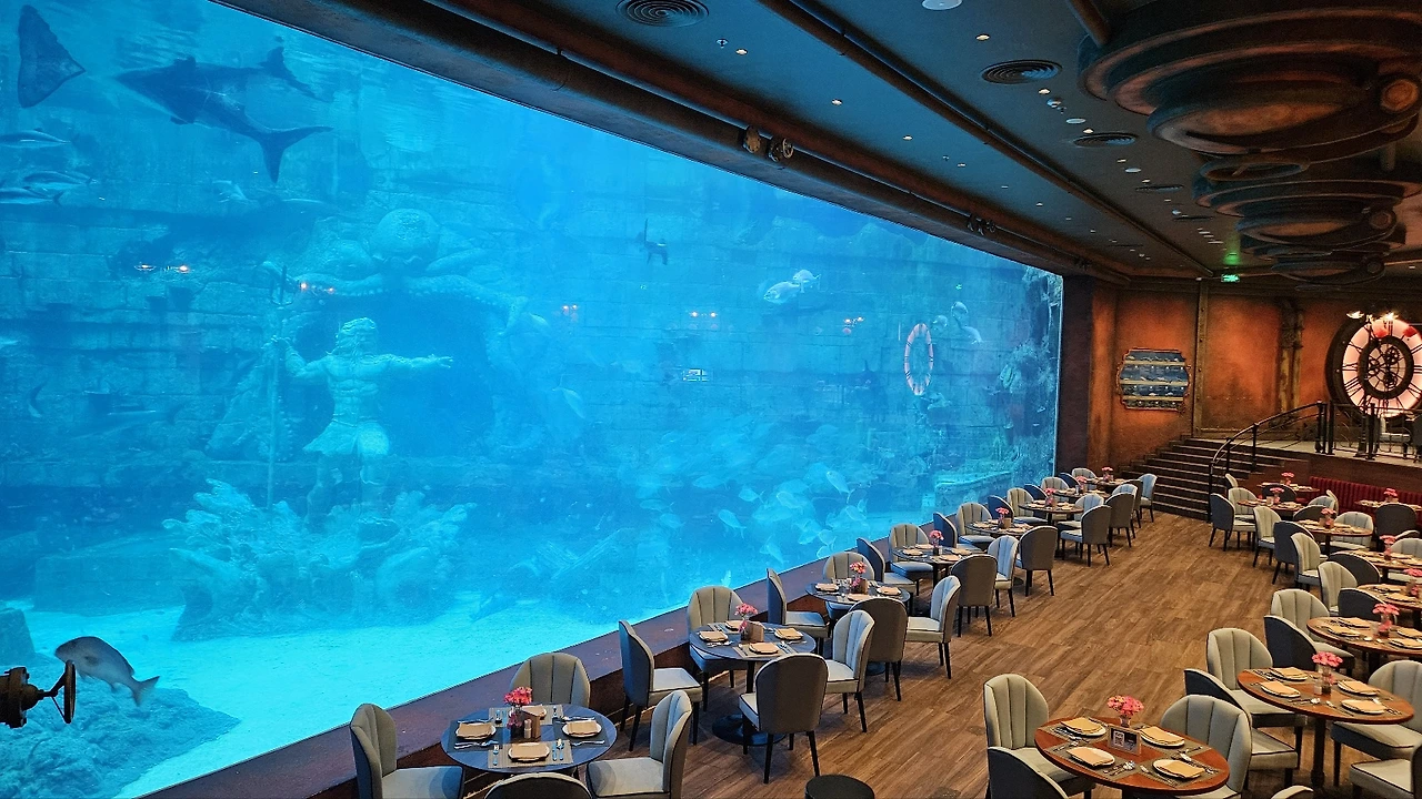 이동하는 길은 해저터널처럼 되어있는데 그 길이가 제법 됩니다. 그야말로 바닷속세상에 와있는 느낌을 주죠. 메인 수조 옆에는 근사한 레스토랑도 있습니다. 꽤 이색적인 느낌이 들더군요.