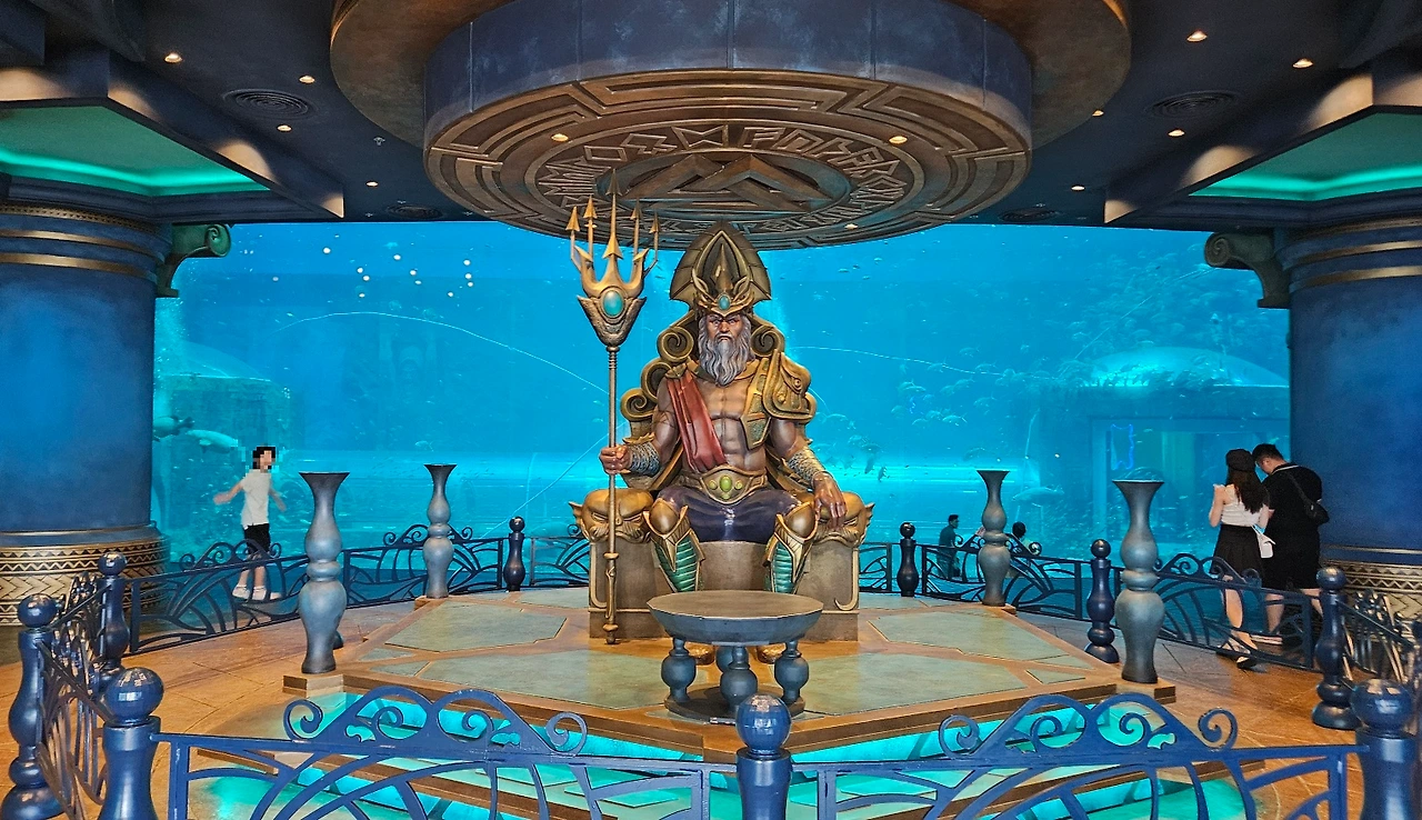 먼발치에서 봐도 놀랍지만 가까이 가면 그 규모가 더욱 웅장하게 느껴집니다. 입구 또한 이국적인 느낌을 주는데 들어가자마자 나오는 동상은 마치 아쿠아맨 영화에서나 나올 법한 모습입니다. 바닷속으로 사라진 아틀란티스를 연상케 하는 느낌도 줍니다.