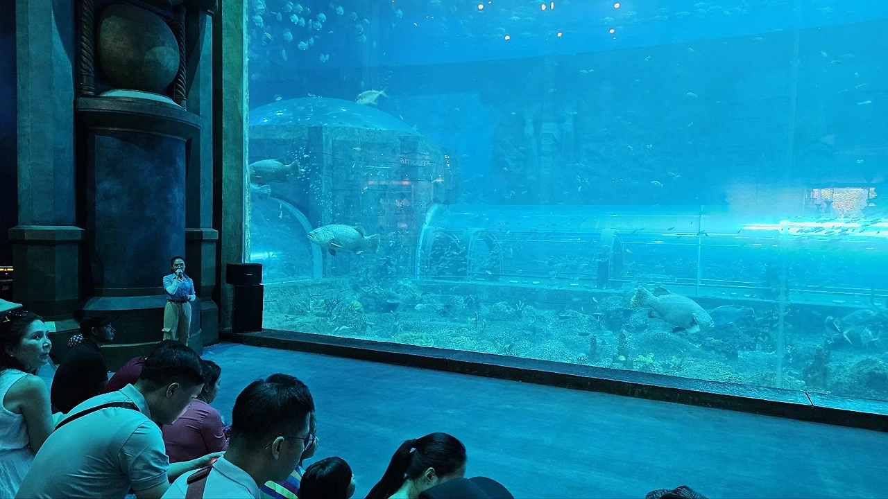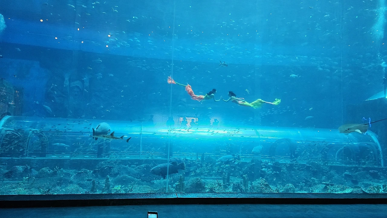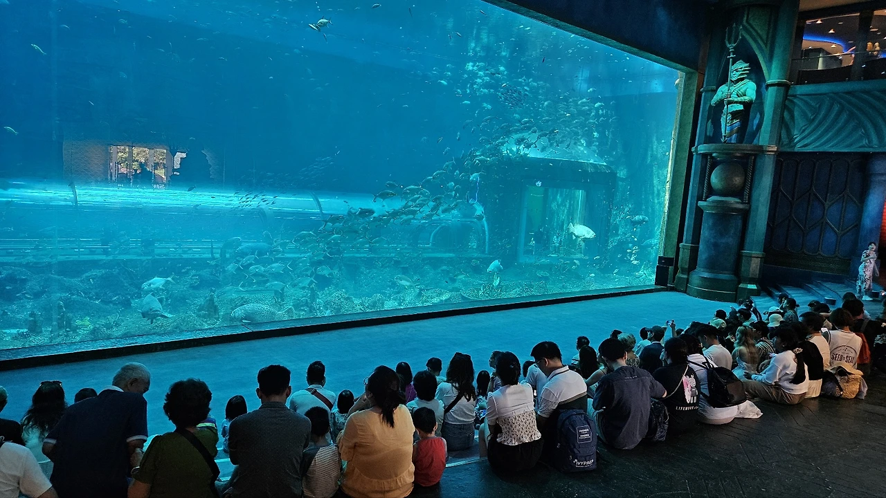 아쿠아리움에서의 대미를 장식한 순간은 바로 머메이드(인어) 쇼였습니다. 메인 홀 앞에 계단식 좌석에 앉아서 정면에 있는 대형수조 안에서 하는 공연이었는데요. 20여 분 동안 장비 없이 잠수하는 모습을 보니 정말 인어라고 해도 과언이 아닐 정도라는 생각이 들었습니다. 바닷속에 함께 있는 듯한 느낌 그 자체였죠. 약간 반복적인 퍼포먼스도 있었지만 이곳만의 자랑거리라고 해도 될 정도의 공연이었습니다.
