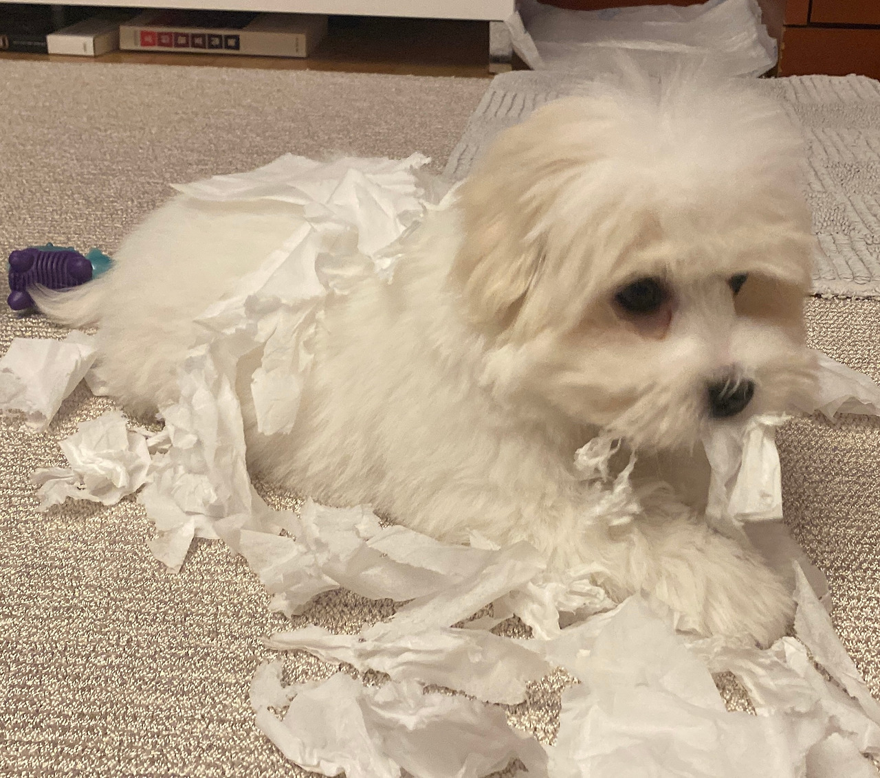 잠깐 한눈을 팔면 거실 소파의 속살은 하얗게 뜯겨 백자의 놀잇감이 되어 있었고, 점점 속 빈 강정이 되어갔다. 휴지는 또 얼마나 좋아하던지 한번 물리면 처참한 모습으로 난도질을 당했다.