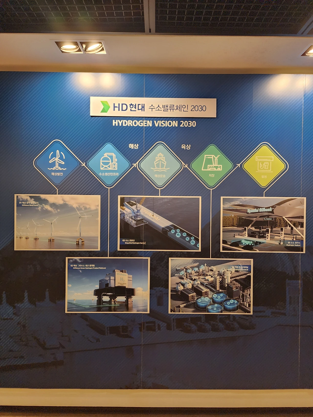 마지막으로 소개하고 싶은 산업현장은 HD현대중공업의 울산 조선소 야드입니다. 6.25 전쟁 직후 1960년대의 대한민국 1인당 국민소득이 120 달러밖에 안 되던 최빈국 대한민국이 지금의 대한민국이 될 수 있게 해 준 근간의 산업 중에 하나가 바로 조선산업이었으며, 그 시초가 되어 준 기업이 바로 故 정주영 회장의 HD현대중공업이라고 말할 수 있습니다. 대한민국은 지형상 국토의 3면이 바다로 둘러 쌓여 있고 수출의존도가 높은 국가이다 보니 대한민국 화물운송의 90% 이상이 배를 통해 이뤄질 수밖에 없는 구조입니다. 이것이 우리 대한민국 조선산업을 세계최강으로 만들어주었던 원동력이 되었다고 생각합니다. HD현대중공업 울산 조선소 야드에 도착해서 버스를 타고 투어를 했을 당시 새로 수주받은 4척의 대형선박이 눈에 들어왔고, 그 스케일에 일단 한번 압도를 당했습니다. 제철소 공장을 처음 봤을 때 그 웅장함과 비슷하면서도 다른 느낌으로 기억이 되었습니다. 이런 세계 1위의 자리를 지키고 있던 대한민국 조선업도 2008년 세계 금융위기 이후 글로벌 물동량 감소, 해운업 불황, 선박 발주 감소, 일감 부족 등의 악순환 구조에 빠지게 되었습니다. 이로 인해 상당수 중소형 조선사들이 무너지기 시작했고, 대형 조선사들 마저도 가혹한 구조조정으로 겨우 연명을 유지하고 있었습니다. 그리고 15년이 지난 지금 대한민국의 조선업은 탄소중립이라는 새로운 국면을 맞이하여 다시 한번 세계최강의 자존심을 되찾을 기회가 생겼습니다. 대한민국과 같은 자원 빈국이 수소와 같은 차세대 에너지원의 주도권을 잡기 위해서는 남들보다 더 발 빠르게 기술개발 및 발굴을 해야 합니다. 현대중공업 또한 이러한 시대흐름에 발맞춰 1.5MW급 LNG〮수소 혼소 힘센(HiMSEN) 엔진의 독자적 개발에 성공하며 수소엔진에 첫발을 내디딘 셈입니다. 이 외에도 현대중공업그룹은 향후 LNG 수소 혼소엔진에 대한 연구개발을 지속하며, 2030년까지 수소 비중을 높인 혼소 엔진 개발을 완료하고 2025년에는 완전한 수소엔진을 개발해 육 해상 수소생태계 구축을 완성한다는 비전과 계획을 세우며 탄소중립 실천에 대한 의지를 보여주었습니다. 한국의 경우 자국 내에서 독자적인 재생에너지발전 생산에 여러 가지 제약이 있기에 미국과 유럽 그리고 재생에너지발전에 유리한 지리적 환경을 가지고 있는 중동 및 호주와 같은 국가와 비교해 경쟁적으로 불리하다고 생각을 합니다. 그리고 재생에너지의 간헐성 문제를 극복해 줄 유일한 수단 중에 하나가 결국 수소라고 생각합니다. 저는 미래 수소경제시대가 현실화될 것이고 2050 Net Zero의 마지막 퍼즐을 완성시켜 줄 에너지원이 수소일 것이라는 개인적으로 강한 믿음을 가지고 있습니다. 대한민국이 이 퍼즐에서 주도권을 잡기 위해서는 수소와 관련된 다양한 기술개발부터 선점을 할 필요성이 있고, 이러한 면에서 현대중공업그룹의 선박 수소 연료 시대 선포는 올바른 선택으로 보고 있습니다.