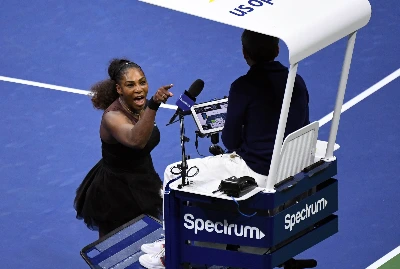 우) 2018년 US오픈 결승에서 코칭 위반을 선언한 심판에게 격렬하게 항의한 세레나 윌리엄스