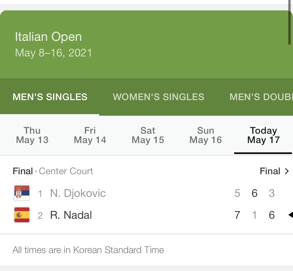 세계랭킹 1위이자 5번 로마 마스터즈를 우승한 디펜딩 챔피언에겐 통하지 않았다