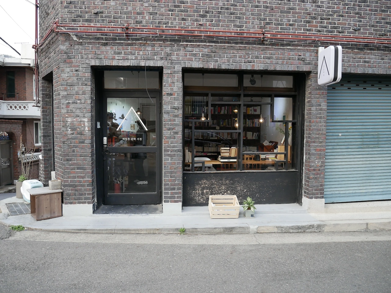 미처 다 올리지 않은 셔터, 갈색 철로 된 입구, 기울어진 언덕 사이에 위치한 서점. '있는 그대로'라는 말이 이 서점의 첫인상이다. 이전에 어떤 공간이었는지도 궁금증을 유발하면서도 유리창 안으로 비친 가게의 모습이 참 거침없었다. 이 서점은 두 번째 방문이다. 이 서점은 주인이 있는 공간과 서점이 천으로 구분되어 있다. 그래서 부담 없이 둘러보고 갈 수 있었다. 그래서 다른 서점보다 더 마음에 든다. 다음에 또 가고 싶다.