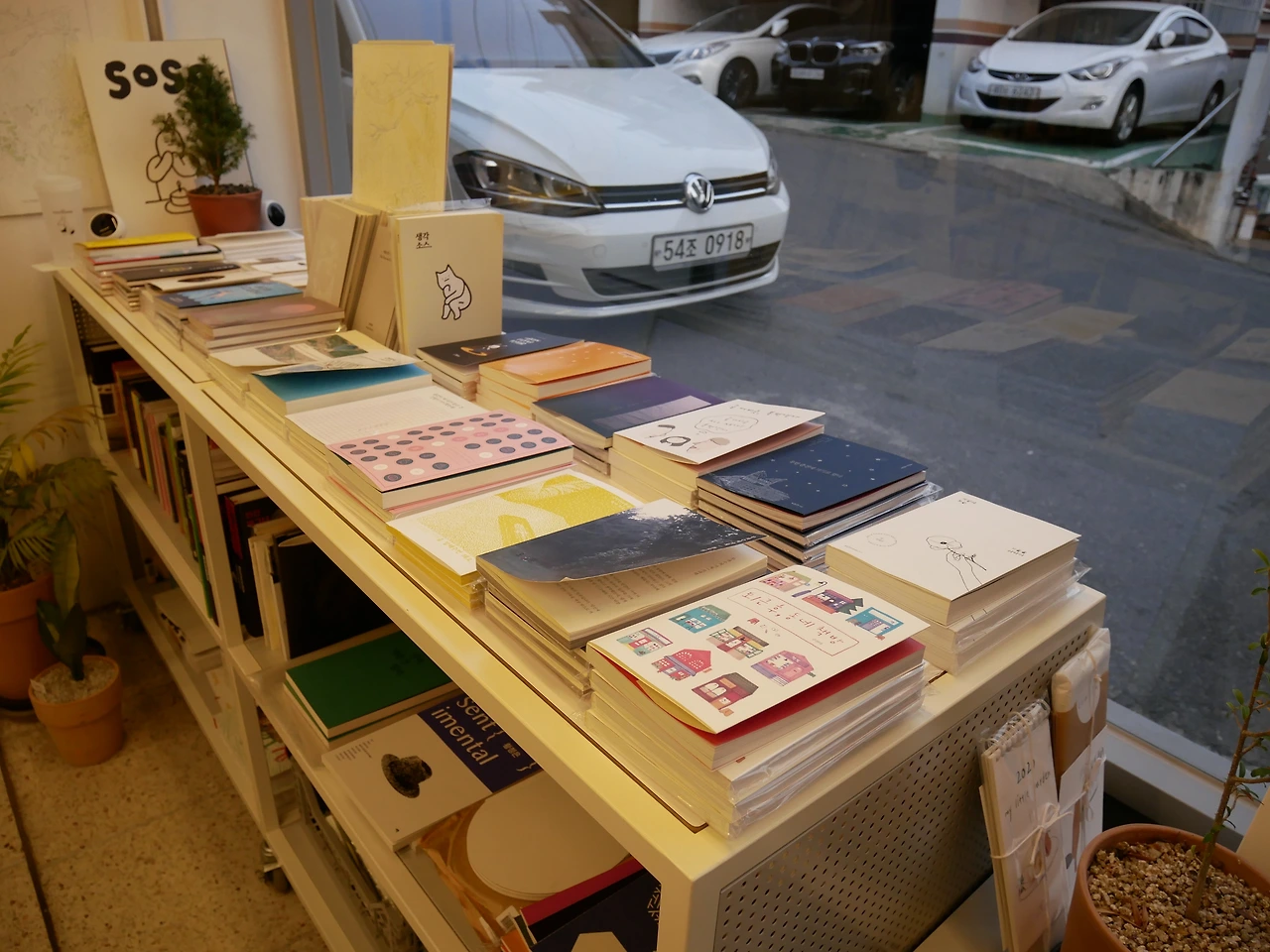 위의 두 서점보다는 큰 규모이고 책 종류도 많다. 다른 독립서점들과는 다르게 깔끔한 인테리어이고 조명도 밝다. 중간중간에 자리한 식물들이 편안한 느낌을 주고, 많지는 않지만 문구용품, 굿즈도 있다. 다른 서점들에 비해 무난하고 평범한 느낌이지만 가장 큰 매력은 홈페이지가 잘 구축되어 있다는 점이다.