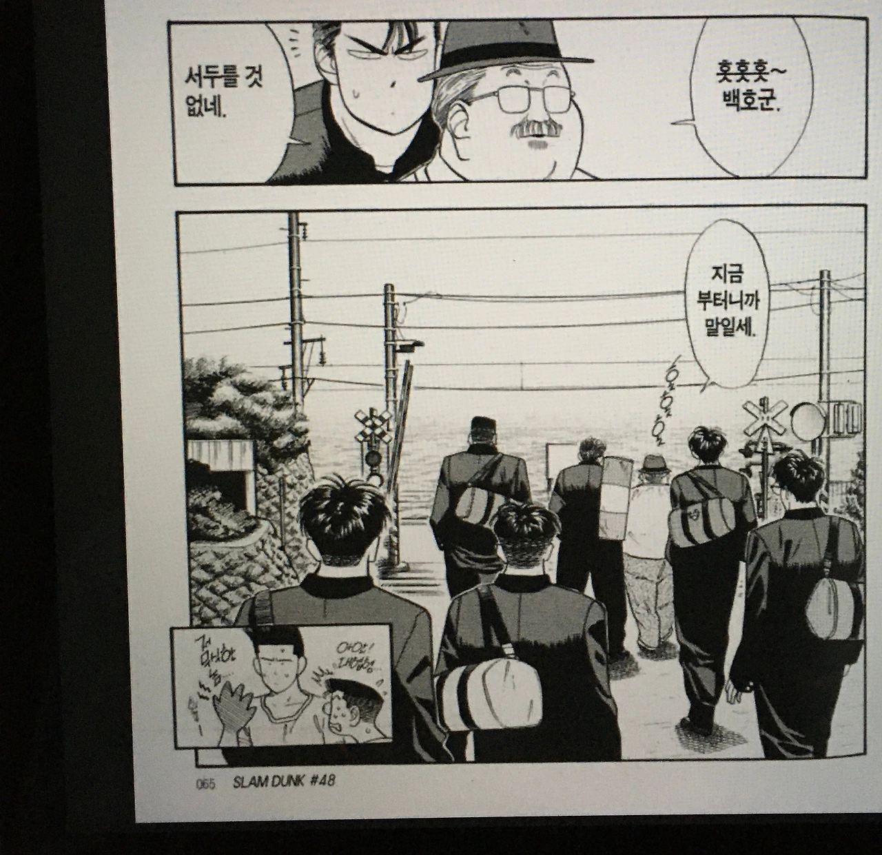이 장면은 채치수와 안경 선배의 과거 회상 장면이다. 에노덴은 15분 간격으로 열차가 있는데 이 장면을 보려고 땡볕에서 15분을 기다렸다. 바다 풍경 사이로 열차가 지나가는 것이 만화에서 본 장면 그대로였다. 15분이 아깝지 않았다.