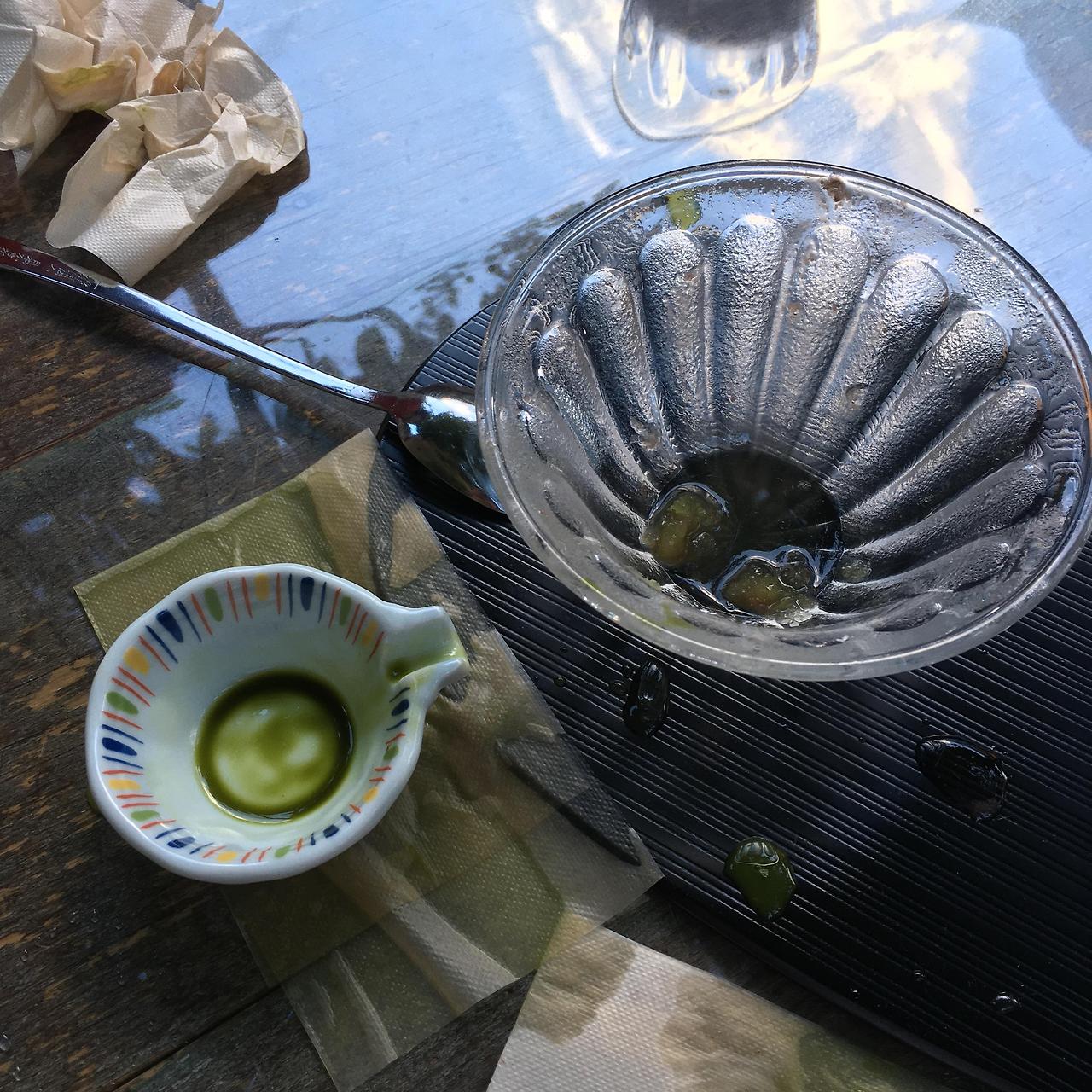 두둥 빙수 등장! 팥, 녹차 젤리, 녹차 시럽 그리고 얼음으로 이루어진 심플한 빙수. 팥 양이 적다고 느껴졌지만 맛은 최상급. 머리에 띵-한 느낌도 없는게 신경써서 만든 티가 났다. 젤리는 한국에서는 다소 생소한 '한천'식으로 만들어졌다고 한다. 일본 전통 디저트 안미쓰에 들어가는 묵같은 질감이고 맛있었다. 호불호는 있을 것 같다.