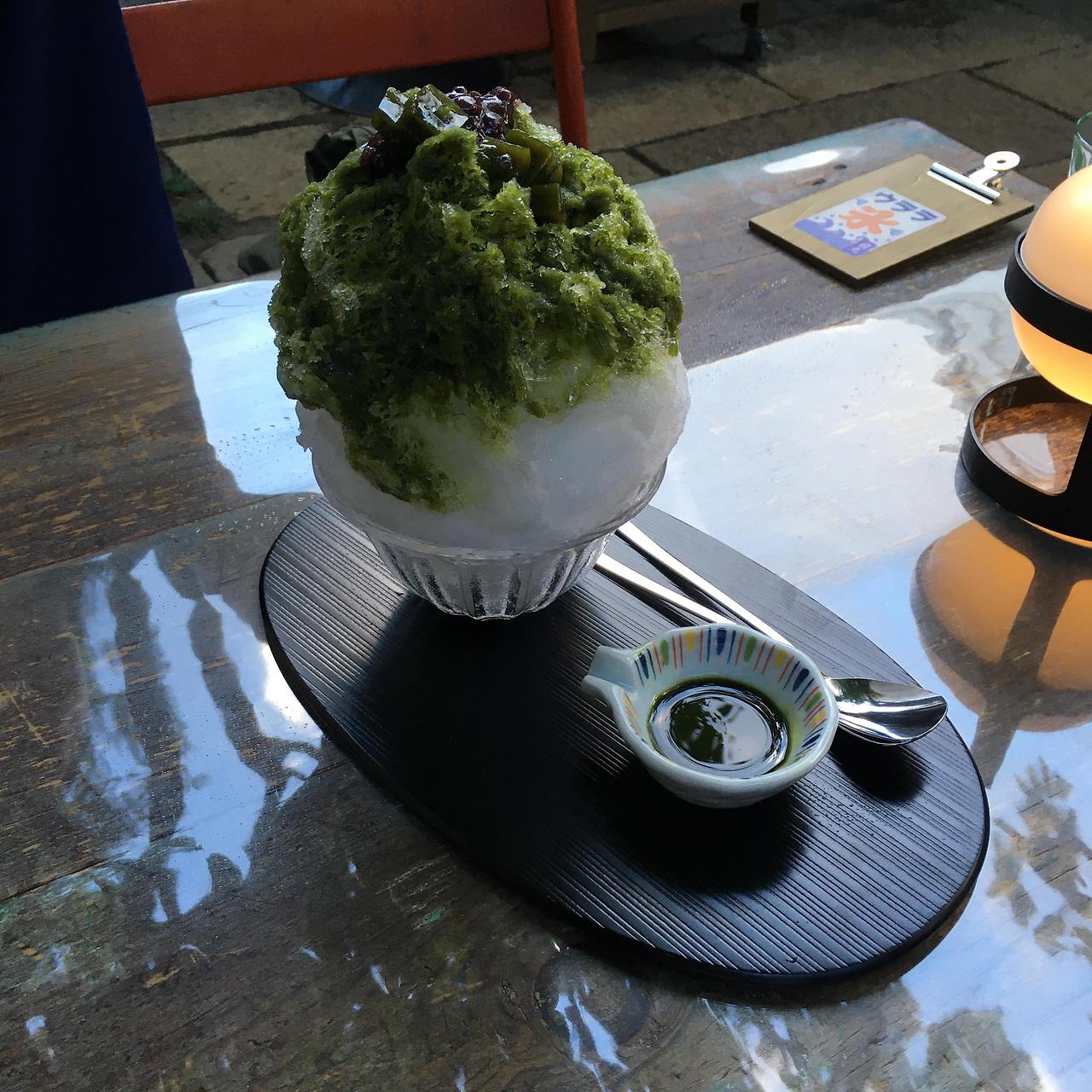 이곳의 메뉴판도 역시 일본어로 되어 있어 있었다. 글자가 많아 멘붕이었다. 차분하게 파파고를 켜서 번역해봤지만 한국어로 봐도 생소한 단어들이 많았다. 나는 과일을 먹지 않아 디저트를 시킬 때 항상 신중해야 한다. 뚫어지게 보다가 ウララこだわりのかき氷です。 우라라의 고집있는 빙수입니다. 라는 문구를 보고 '宇治あずき' 를 주문했다. 宇治는 처음 보는 단어인데 알고보니 교토의 녹차마을 지명이었다. あずき는 팥이다. 곧 저녁을 먹을 예정이라 한개만 주문했는데 다들 1인 1빙수 하고 있어서 눈치가 보였다. 일본은 빙수로 식사를 하는걸까? 1인 1빙수의 문화가 있는듯 하다.