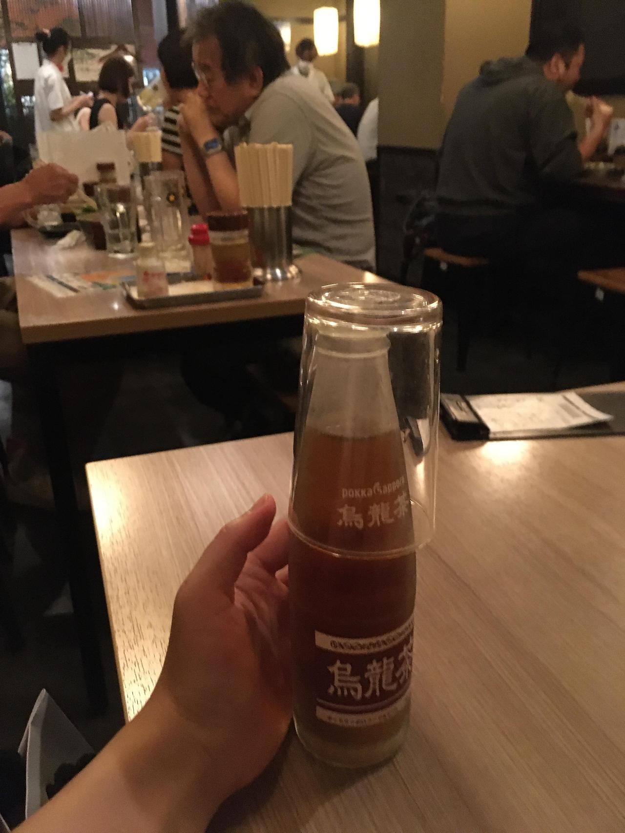 딱 맥주 한 잔 하기 좋은 가게다!라는 생각이 들었지만 나는 술을 못해 우롱차(200¥)를 시켰다. 병에 담긴 우롱차! 이런 우롱차는 처음이었다. 시원하고 맛도 최고. 한 잔 마시니 역시 캬~ 하는 맛이다. 야키도리와도 어울릴 것 같다.