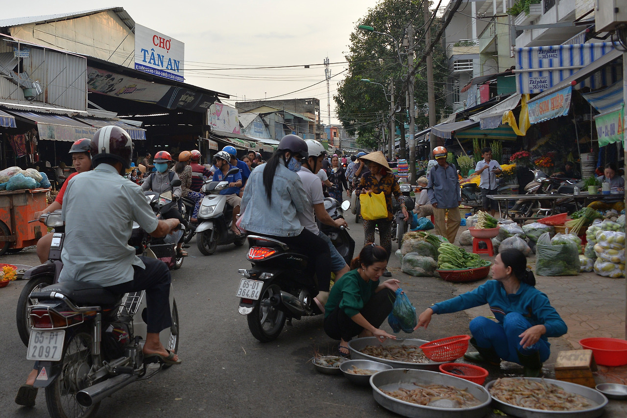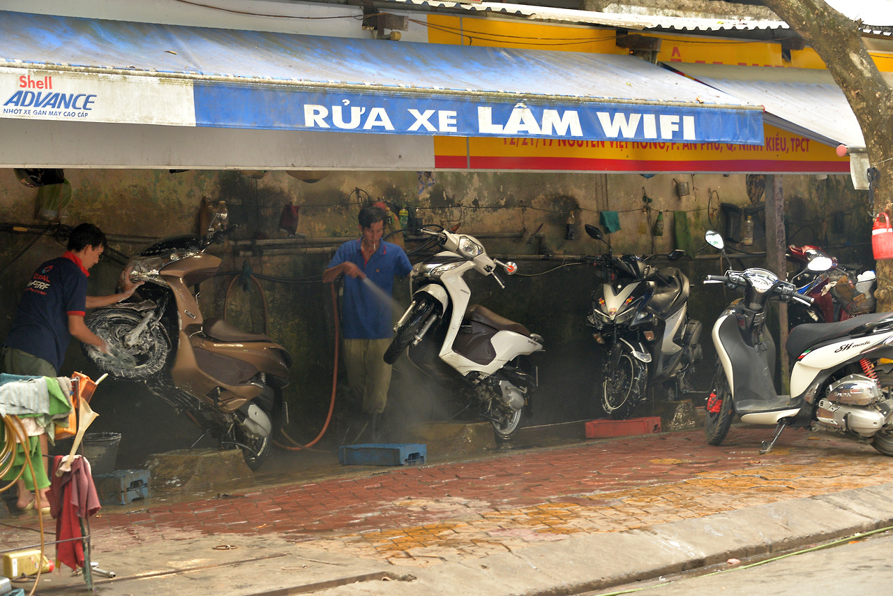 또 다른 분위기의 헴이 모여있는 지역이 있습니다. 껀떠대학교 앞 동네지요. 껀떠대학교 앞 큰 도로를 건너면 작은 개천을 끼고 이어지는 길이 있습니다. 입구에는 '오빠'라는 이름의 한국식 고깃집도 있지요. 그 오른쪽 작은 골목 입구로 들어가면 껀떠대학교 학생들이 많이 사는 헴들이 이어집니다. 언뜻 보면 교도소처럼 보이기도 하는, 긴 복도에 방들이 이어지는 형태의 집들이 많습니다. 방 하나에 몇 명씩 함께 사는 것 같고 가운데는 오토바이들이 주차되어 있고 빨래들이 줄에 가득합니다. 제가 이 골목들을 다닐 때는 늦은 오후였는데 이미 학교에서 돌아온 학생들이 당구장에 피시방에, 카페에 여기저기 모여 있더군요. 딱, 옛날 신촌 하숙집 골목 같은 분위기랄까요. '추리닝' 바람에 깔깔대며 쫓아다니는 학생들 사이를 걷다 보면 막다른 골목. 또 다른 길로 가도 막다른 골목. 이 쪽엔 특히 막다른 골목이 많더군요. 결국 지도를 켜고서야 큰길로 빠져나올 수 있었습니다. 옷가게와 음식점이 복잡하게 이어지는 대학가 특유의 분위기가 가득한 거리는 자동차와 오토바이가 가득합니다. 노점 가게도 많아서 좁은 인도는 걷기가 힘들 정돕니다. 바게트 공장 아주머니와 눈이 마주칩니다. 맛이라도 볼 텐가? 하. 말씀만으로도 고맙습니다. 잠깐 이어진 눈빛 대화에 기분이 조금 따뜻해집니다. 껀떠, 베트남 서남쪽의 이 낮고 넓은 동네 골목까지 흘러들어와서 이런 마음들을 조금씩 나눠 받고 있었습니다.