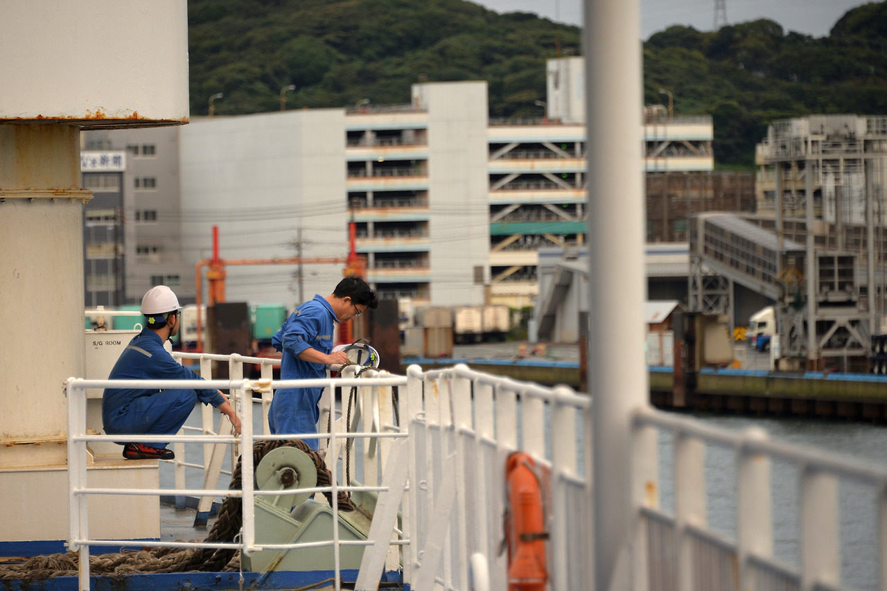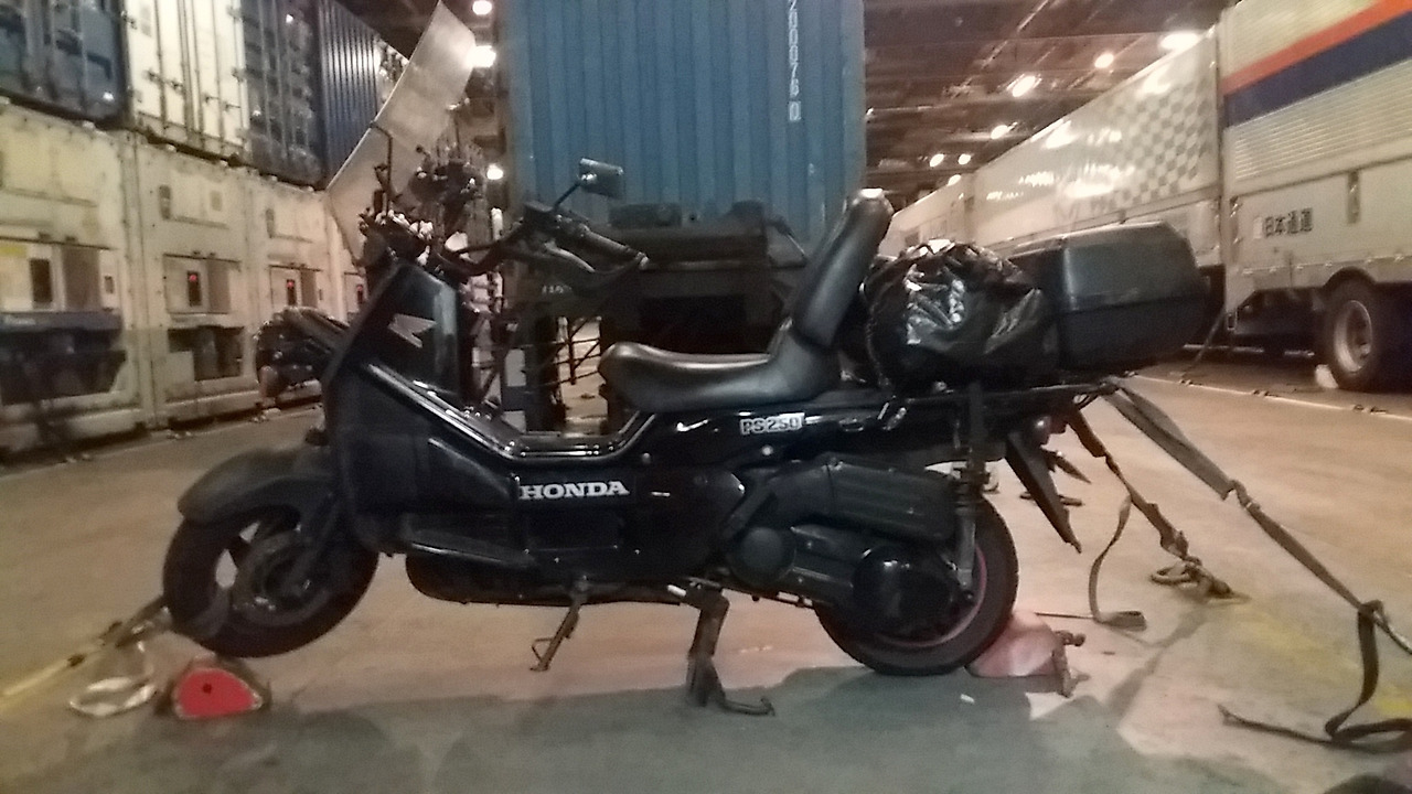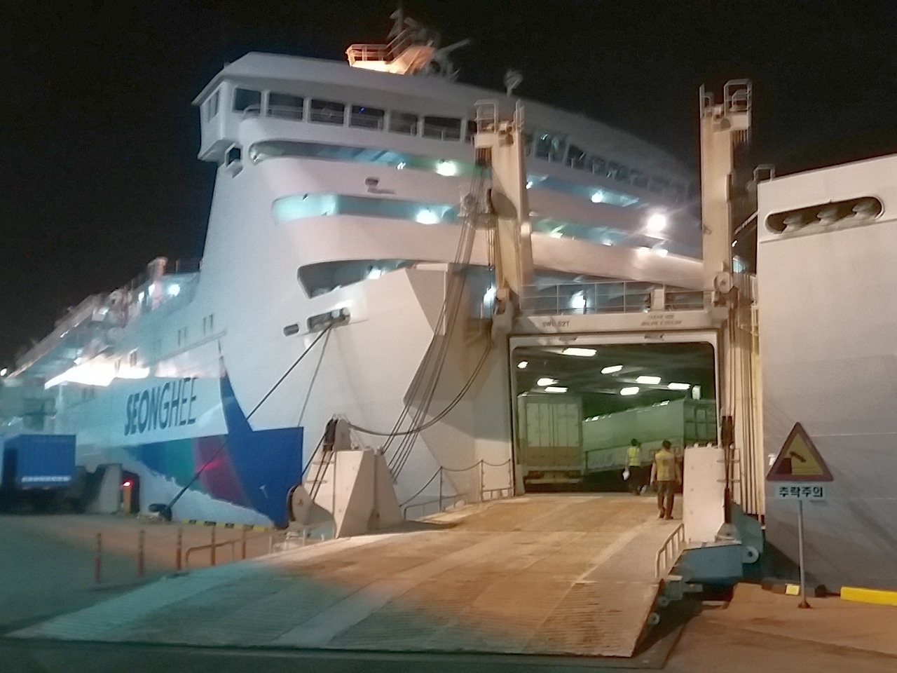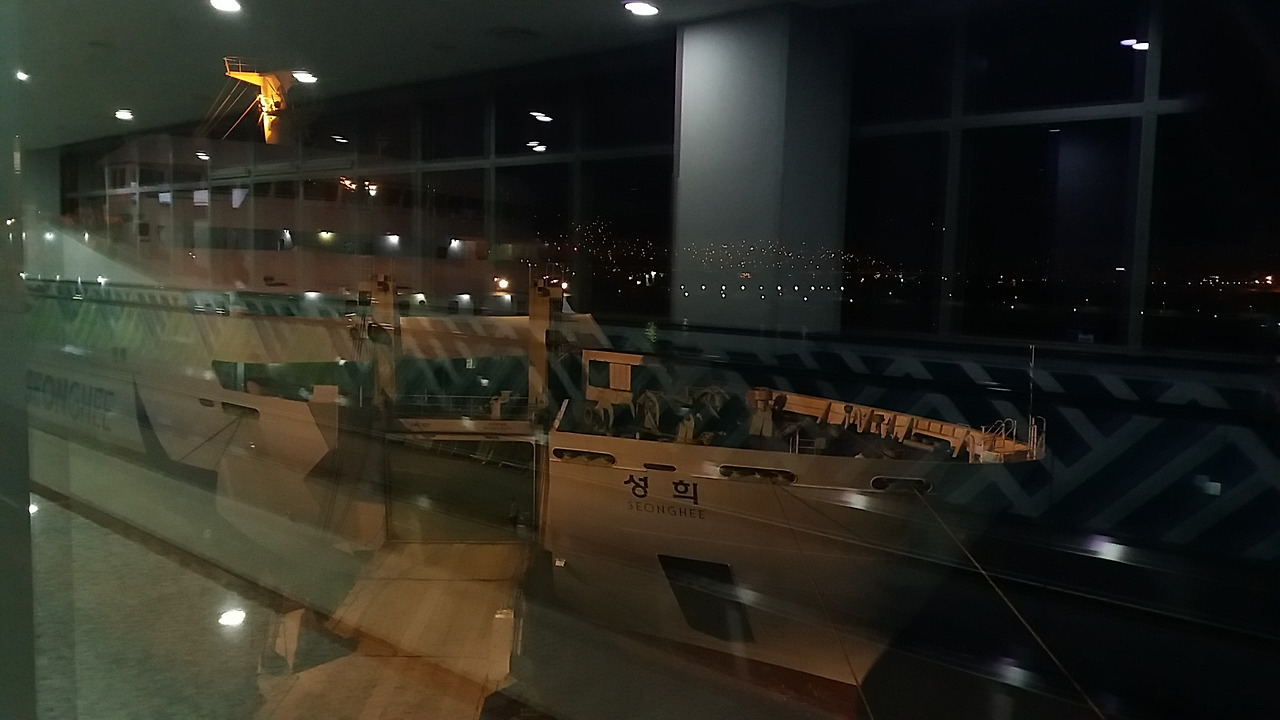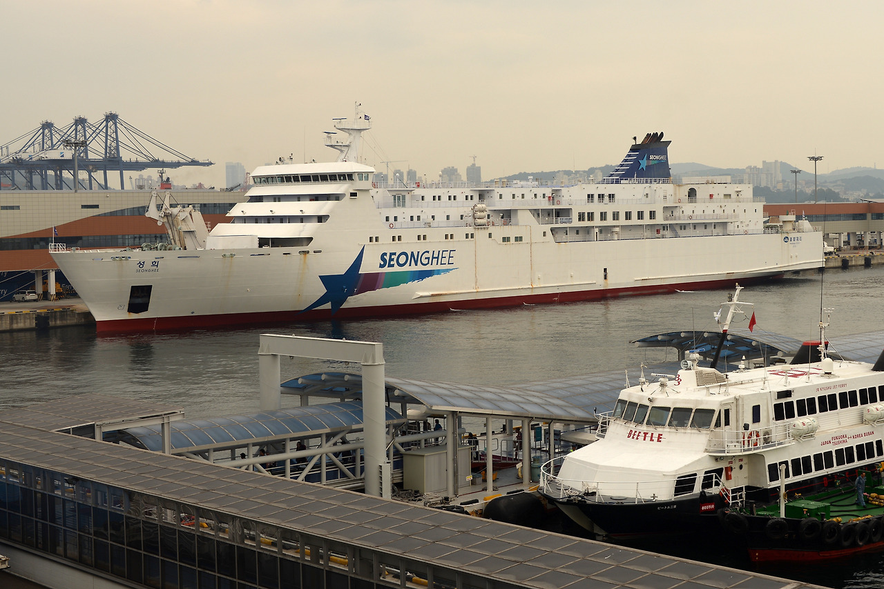 부산항에서 배를 타야 합니다. 그러니 실제 여행은 집에서 부산항까지 가는 게 시작이겠지요. 서울 한복판의 집에서 부산항까지 네이버 지도에 '자동차 전용 제외'로 경로를 찾으면 450km, 9시간 30분.이라는 답이 나옵니다. 부산항에 도착해야 하는 시간은 오후 세 시. 어차피 이틀이 걸릴 계산을 해야 합니다. 중간쯤인 문경에서 하루를 머물고 가기로 합니다. 그리고 부산 친구 집에서 또 하루. 배를 타러 가는 데만 2박 3일이 걸리는군요. 부산역 뒤쪽으로 몇 년 전에 새로 지은 부산항 국제여객터미널이 있습니다. 세 시까지 이 곳 카운터로 가서 예약을 확인하고 운임을 지급하면 됩니다. 운전자 2등석 운임 포함 37만 원. 왕복이니 많이 비싼건 아닙니다. 원래 운임이 9만 5천원 정도니까 모터바이크가 26만원 정도 더 드는 셈이지요. (승용차는 왕복 46만원입니다) 보딩패스를 받고 기다리면 잠시 후 선사 직원이 옵니다. 이때부터는 시키는 대로 하면 큰 문제없습니다. 건물 1층 왼편으로 차들이 들고 나는 출입구가 있는데 그 안쪽에 세관이 있습니다. 세관 사무실에 먼저 가서 '자동차 일시 수출입 신고서' 양식을 작성하고 준비한 서류들을 내면 '자동차 일시 수출입 면장'을 받습니다. 이건.. 다시 입국할 때 제출해야 됩니다. 분실하면 복잡해집니다. 수수료는 만원인가 듭니다. 이 절차를 마치면 출국서류 작업은 끝. 이제 통관합니다. 모터바이크에서 짐을 전부 꺼내서 검색과정을 거칩니다. 모터바이크는 따로 검사를 받고 항구 안쪽으로 직접 운전해서 옮깁니다. 짐검색을 끝내면 다시 모터바이크에 싣고 배 근처에 일단 주차해 놓습니다. 이 과정 동안 담당자가 계속 쫓아다니면서 할 일을 알려줍니다. 준비만 다 해가면 어려울 것 없더군요. 다시 터미널로 올라와서 승선시간까지 대기합니다. 다른 승객들과 함께 출국 절차를 거치고 나서 직원에게 얘기하면 낮에 모터바이크를 주차해 놓은 곳으로 데려다 줍니다. 거기서 지시에 따라 배로 진입해서 정해진 곳까지 가져가면 직원들이 흔들려도 넘어지지 않도록 배에 바이크를 결박시켜 줍니다. 이제 짐을 가지고 지정받은 객실로 올라가면 되는 거지요.