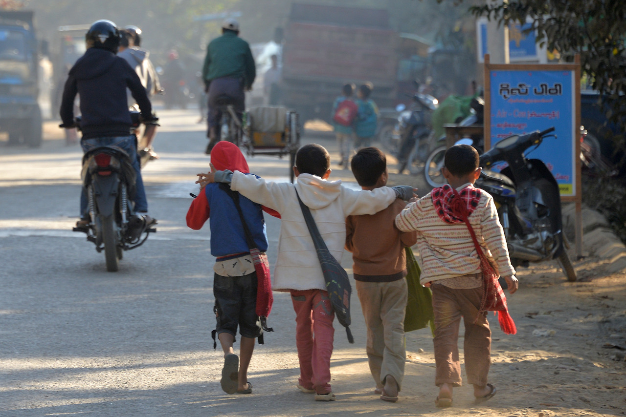 건기의 낮은 강물을 여행자들을 태운 보트가 거슬러 오른다. 라카인 주의 북쪽은 친(Chin) 주. 일반 여행자들은 방문이 금지된 곳이다. 친 족의 몇몇 부족이 가까운 라카인 땅에도 산다. 친 족 여성들은 얼굴의 문신으로 유명하다. 부족간 전쟁에서 끌려가지 않기 위해서였다고도 하고 문신이 아름다움의 표시였다고도 한다. 여행자들은 강을 따라 친 족 부락을 방문하고 그들은 물레로 짠 직물을 여행자들에게 판다. 이제는 젊은 친 족 여성들은 얼굴 문신을 하지 않는다. 친 족 노파들은 자신들을 보러 몇 시간 강을 거슬러 온 여행자들과 얘기를 나누는 게 싫지 않은 것처럼 보인다. 작은 부락에는 아이들, 강아지들, 병아리들과 새끼 돼지들이 한데 어울려 뛰어다닌다. 얼굴도 옷도 깨끗함과는 거리가 멀지만 도시의 아이들한테는 없는 솔직한 표정과 웃음이 이 작은 부락 아이들에게는 있다. 어쩌면, 미얀마에서도 외진 이 곳까지 굳이 오게 된 까닭은 낯선 이들을 피하지 않고 손을 흔들며 다가오는 이 아이들의 웃음일지 모른다.