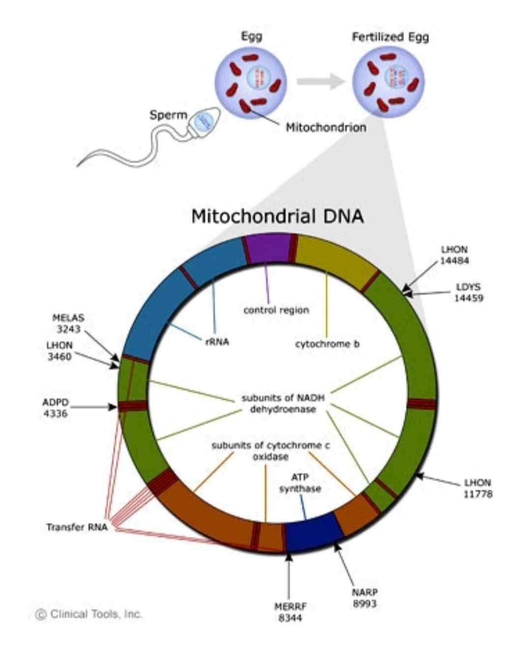 세포 속에 유전정보를 저장하는 DNA는 사람을 포함해 대부분의 생명체에서 이중나선 구조를 하고 있다. 그런데 미토콘드리아의 유전자는 세균처럼 원형 DNA를 가지고 있다는 점이 독특하다. 이는 미토콘드리아가 세균에서 유래했음을 보여주는 흔적이다. 또 하나의 중요한 특징은 미토콘드리아가 모계로만 유전된다는 점이다. 난자는 풍부한 세포질과 함께 미토콘드리아를 전달하지만, 정자의 미토콘드리아는 수정 과정에서 대부분 파괴되거나 제거된다. 따라서 우리의 세포 안에서 숨 쉬고 있는 미토콘드리아는 사실 어머니로부터 이어받은 것이다.