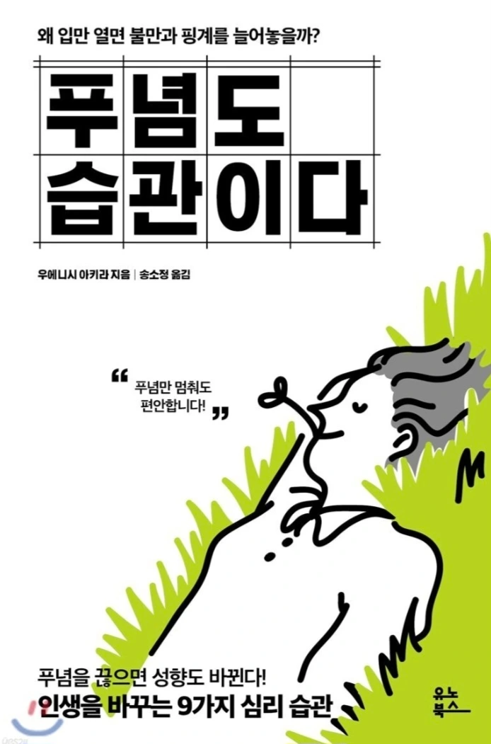 우리는 종종 불평과 푸념을 입에 달고 산다. "왜 나만 이런 일을 겪는 거지?", "세상은 왜 이렇게 불공평할까?" 이런 말들이 반복될 때, 우리는 자신도 모르게 푸념의 늪에 빠진다. 하지만 우에니시 아키라는 저서 <푸념도 습관이다>에서 단호히 경고한다: "푸념도 하나의 습관이다. 그는 심리학자로서 지난 30년 동안 마음과 인생이 답답한 사람들에게 다양한 해결책을 제시해오고 있고, “푸념을 끊으면, 인생이 새롭게 시작된다”라고 말한다.