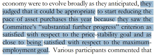 대부분의 연준 위원들은 경제가 예상대로 진전된다면 연내에 테이퍼링을 실시할 수 있다고 언급했습니다. 그러나 향후 경제가 진전되어야만 합니다(조건).
