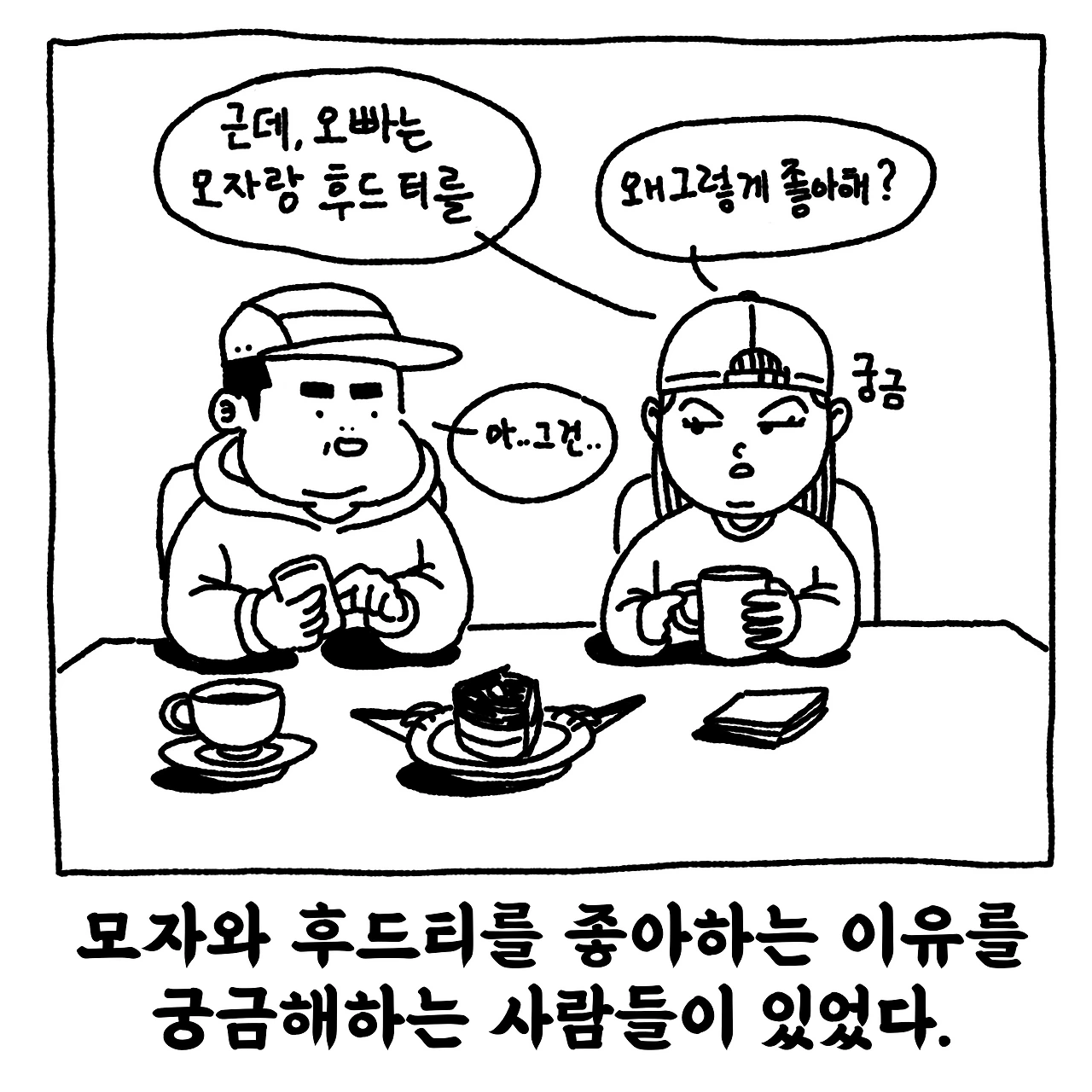 제가 선호하는 스타일에 대해 궁금해하는 친구들을 종종 봅니다. 1년 365일 중에 360일 정도는 모자를 쓰고 한 여름을 제외하곤 후드티를 즐겨 입는데요.
