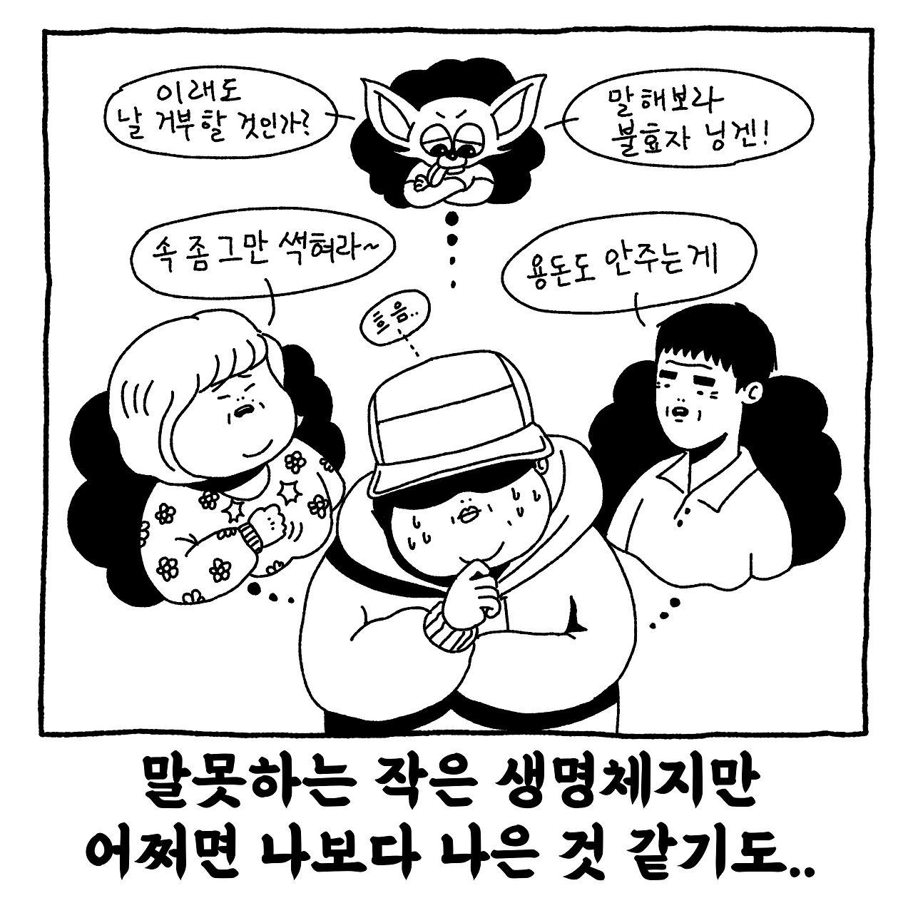 '내가 부모님을 웃게 해 드린 게 언제였더라? 어쩌면 나보다 효도를 많이 하는 녀석이 아닌가?'라는 생각이 드니 조금 더 사랑스럽게 느껴집니다.