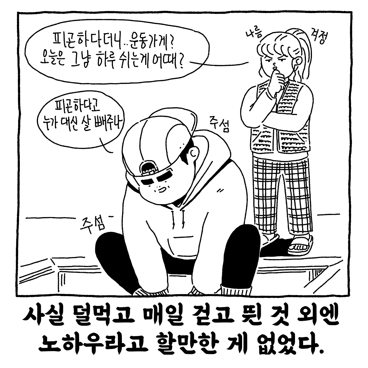 아직 갈 길이 먼 다이어트지만 꽤 많은 감량을 한 덕분에 지인들이 노하우를 물어보곤 합니다. 특별한 노하우가 있다면 아낌없이 알려드릴 텐데 사실 정말 별거 없거든요. 평소보다 덜먹고 거의 매일 걷고 뛰는 운동을 한 것이 저의 다이어트 방법이었습니다. 한 가지 조금 특별한 것이 있다면 스스로 약속한 운동량을 맞추기 위해 비가 오는 날이나 체력이 조금 떨어졌던 날도 운동을 했던 것이라고 할 수 있을 것 같습니다. 저처럼 어떤 계기가 있어서 목표를 정하신 분이 계시다면 꼭 꾸준하게 해 보시면 좋겠습니다. 결국은 눈에 띄는 결과를 얻으실 수 있을 겁니다. :-)
