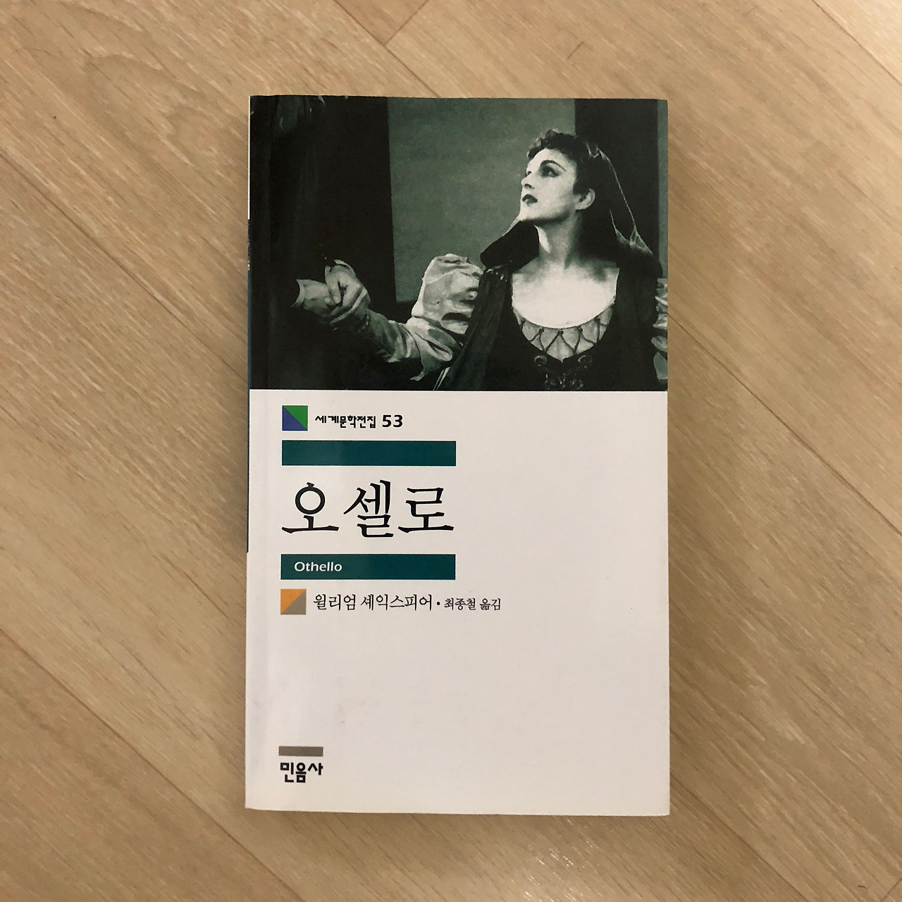 민음사 세계문학전집의 오셀로는 학부 최종철 교수님이 번역을 하셨다. 책 서문과 해석 역시 최종철 교수님이었고, 귀찮으셨는지 아니면 보다 깊은 이해를 돕기 위해선지 모르겠지만 해석은 교수님의 오셀로에 대한 논문으로 대체하셨다. 교수님은 오셀로를 오리엔탈리즘적 시각이 아니라 이분법적 시각에서 분석하셨고, 그 역시 꽤 타당하며 흥미로운 사고였다. 오셀로, 이야고, 카시오 등 등장하는 모든 인물들이 이분법 사고를 갖고 있는 극단의 세상에서 유일하게 탈이분법적 사고를 보여준 안쓰럽고 아름다운 데스데모나의 희곡 속 영혼의 명복을 빈다.