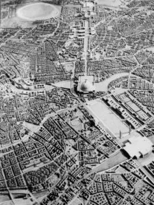 이때의 계획이나 건축이 역사적 사실과 뒤섞여 불편함을 느끼게 하는 것은 게르마니아의 직선으로 쭉 뻗은 도로라던가 템펠호프의 공항터미널이 갖는 중앙으로의 응집력을 느끼게 하는 원호 모양의 형태와 관련이 있다. 실제로 그런 의도도 있었겠지만, 무언가 인간을 압도하고 조종하고자 하는 힘이 이런 형태에서 느껴지기 때문이다. 히틀러는 나치 군대의 위용을 보여주기 위해 그리고 통제를 용이하게 하기 위해 직선도로를 만들었고, 이를 의미 있게 하기 위해서 국회의사당에 있던 전승기념탑을 직선도로의 중심으로 옮겼다. 그리고 템펠호프가 가지고 있는 원의 형태를 지닌 광대한 공간은 나치의 선전 공간으로 자주 사용되었다.
