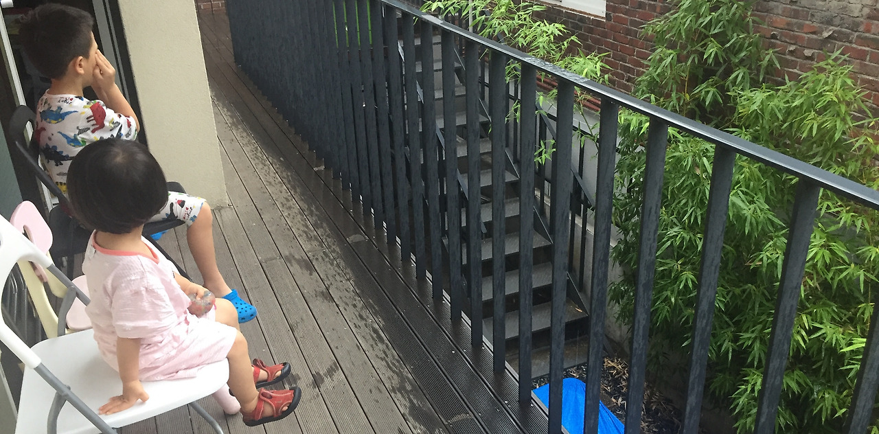 늦잠을 자도 크게 상관없는 일요일 아침이다. 에어콘을 안 켜도 선선한 아침이니 오히려 늦잠을 권장할 만한 날이기도 하다. 더욱이 아내마저 아침일찍 외출했기에 혼자 아이들 보는 절대시간을 줄이려면 늦게.. 아주 늦게 애들이 일어나는 게 여러모로 좋다. 혼자 굿모닝하게 소파에 누워 스마트폰을 돌려보는데 비오는 소리가 제법 크게 들린다. 점점 크게 더 크게. 이 신나는 소식을 알려줘야 할 것 같아 아이들 있는 방(이 아닌 놀이공간?)으로 가보니 리원이는 깨서 멍하니 앉아있고 시원이는 여전히 쿨쿨이다. 눈을 반만 뜨고 앉아있는 리원에게 물었다.