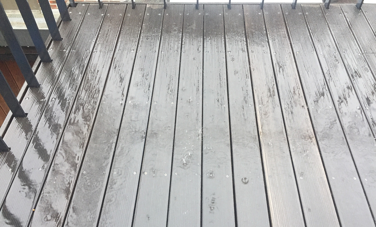 방킬라이데크 위로 비가 쏟아진다. 얇게 고인 물에 떨어지며 빗소리를 낸다. 데크재가 원목이어서 걱정을 했는데 3년째 잘 버티고 있다.