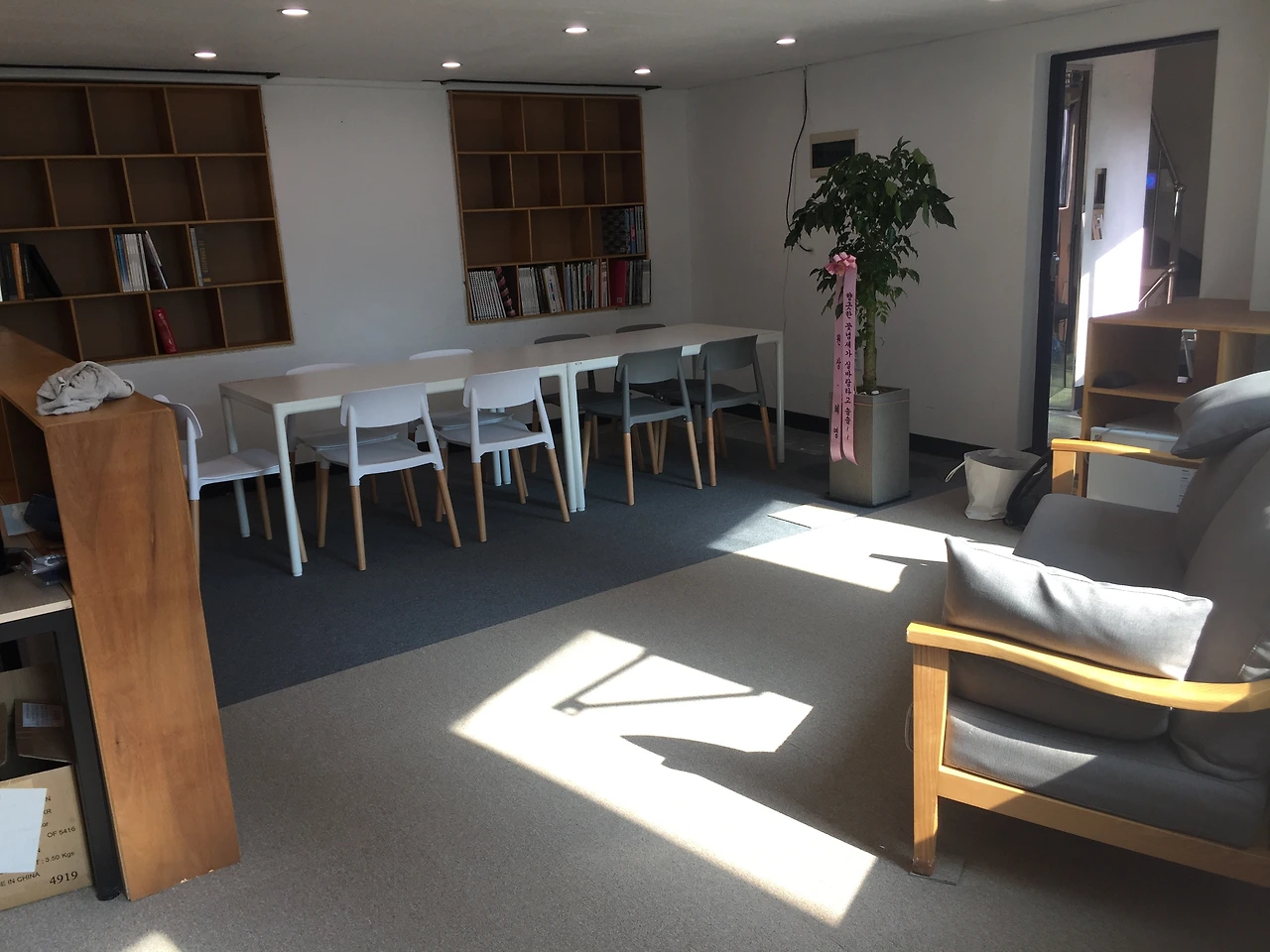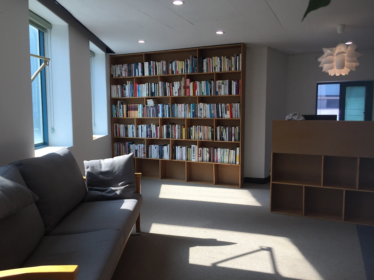 모임과 사무를 병행하는 공간이다. 낮에는 설계를, 저녁에는 건축모임을 할 예정이다. 이 달에 예정되어있던 건축다큐 모임이 스타트인데 코로나로 한 달 미뤘다. 다음달이면 이곳에서 모임을 시작한다. 작은 건축학교처럼 운영해보고싶다. 어서 사람들에게 사무실(모임공간)을 자랑하고 싶은 마음뿐. ^^