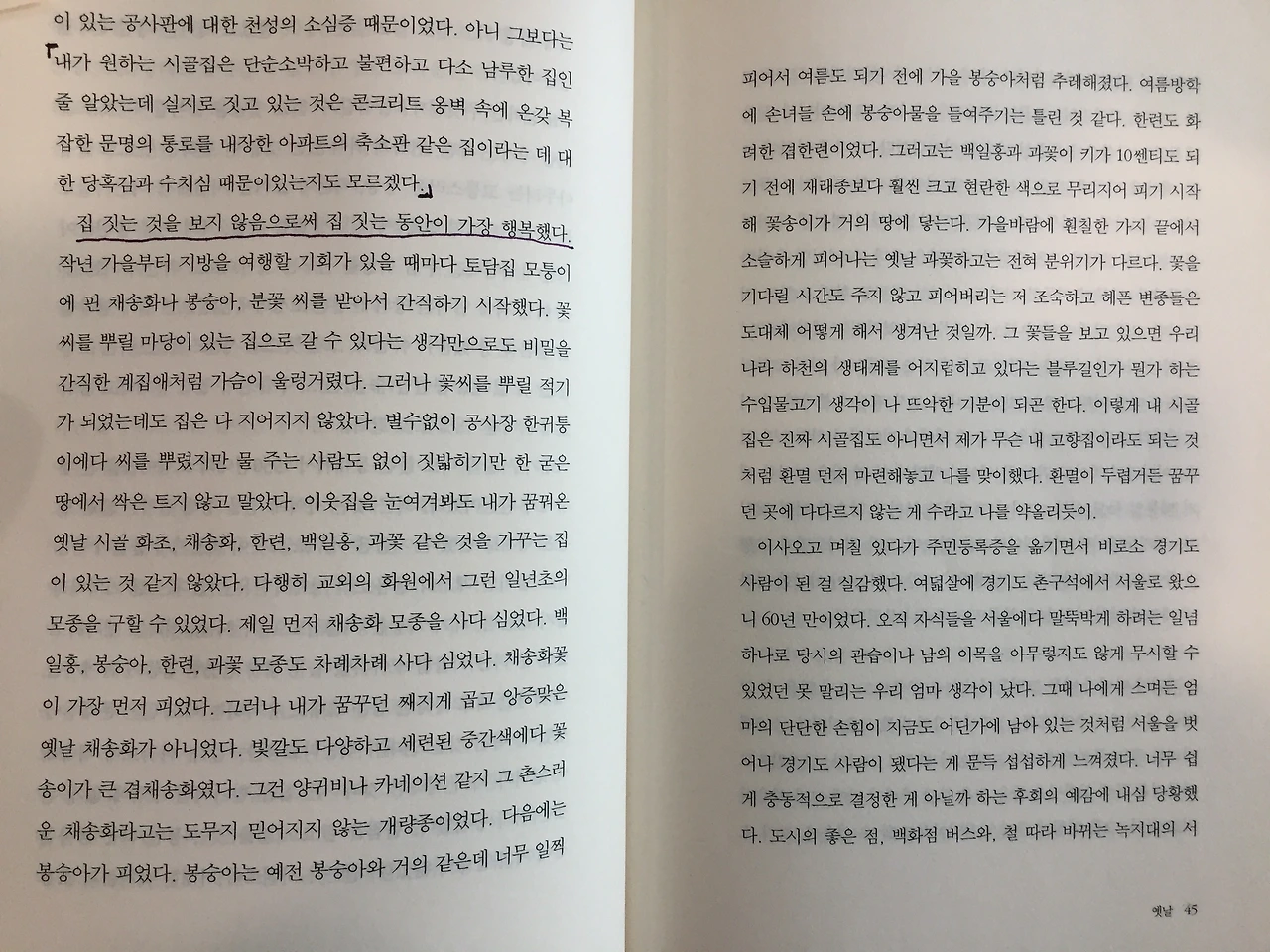 집 짓는 것을 보지 않음으로써 집 짓는 동안이 가장 행복했다." 박완서 산문집 <두부> 중 '옛날'