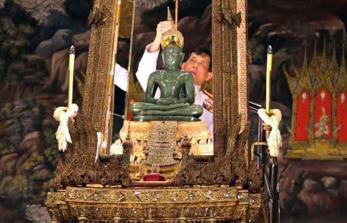 에메랄드 불상은 15세기 태국 북부의 란나왕국(현재의 치앙라이)에서 발견되었다. 이후 치앙마이를 거쳐 라오스의 루앙프라방에서 보관을 하였다. 라오스 왕국에서 이 불상은 왕권을 상징하는 신성한 존재였다. 왕이 즉위할 때에는 이 불상 앞에서 의식을 거행했다. 나라의 평화와 번영을 기원하는 상징이기도 했다. 하지만 1779년, 태국(당시 시암)의 군대가 라오스 수도 비엔티안을 점령하고 나서 이 불상을 가져왔다. 현재는 태국의 보물 1호로 지정되어 방콕의 왓 프라깨우 사원에 고이 모셔져 있다. 지금은 태국의 국왕이 계절마다 불상의 옷을 갈아입히고 있다. 이 불상은 ‘현재를 지키려는 태국인들의 자부심’과 ‘과거를 그리워하는 라오스 인들의 아픔’을 동시에 담고 있다.