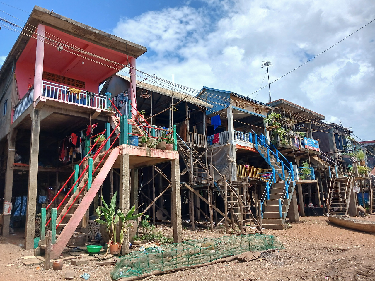 마을에 들어서면 처음 보이는 것은 나무로 만든 강가를 연결하는 다리이다. 50m 정도의 길지는 않지만 나무로 얼기설기 만든 다리이다. 안전 손잡이가 없어서 바닥을 잘 보고 건너야 한다. 강물이 더럽지는 않지만 빠지면 곤란한 상황이 펼쳐질 수 있다. 다리를 건너면 보이는 것은 딱 봐도 '캄보디아 시골에서나 볼 법한 오래되고 낡은 집' 들이다.
