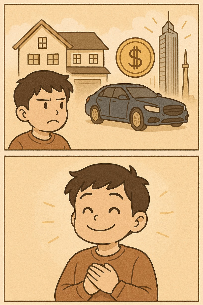 나는 그 질문에 대해 쉽게 '그렇다'라고 말하지 못하겠다. 오히려 사람들의 얼굴에는 불만과 피로, 불안이 더 보인다. 왜 그럴까? 내가 내린 결론은 우리 인간은 배고픈 것은 참지만, 배 아픈 것은 참지 못한다는 것이다. 인간은 끊임없이 남과 자신을 비교한다. 자신보다 좋은 차를 타는 사람, 더 넓은 집에 사는 친구, 더 비싼 옷을 입은 동료를 보며 우리는 스스로의 위치를 자꾸만 측정한다. 그리고 그 비교는 만족보다는 결핍의 감정을 불러일으킨다. 배가 고파서 괴로운 것이 아니라, 배가 부른데도 누군가 더 배부른 사람을 보면 불행해지는 것이다.