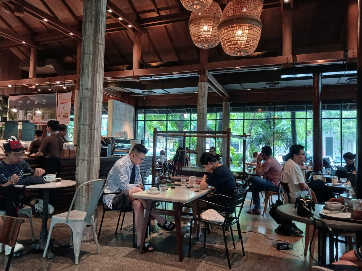 그 모습이 흡사 서울의 브런치 카페 풍경과 크게 다르지 않았다. 뭔가 세련되고 정돈된, 도시적인 분위기였다. 이곳에선 커피와 빵, 샌드위치는 물론 쌀국수나 볶음밥 같은 간단한 식사류도 판매하고 있는데, 가격대는 5천 원에서 1만 원 사이로 한국인들에게는 부담 없는 가격이지만, 현지 평균 소득을 생각하면 꽤 고가다. 참고로 길거리에서 파는 쌀국수는 약 2천 원 정도니 단순 비교만 해도 3~5배는 되는 셈이다.