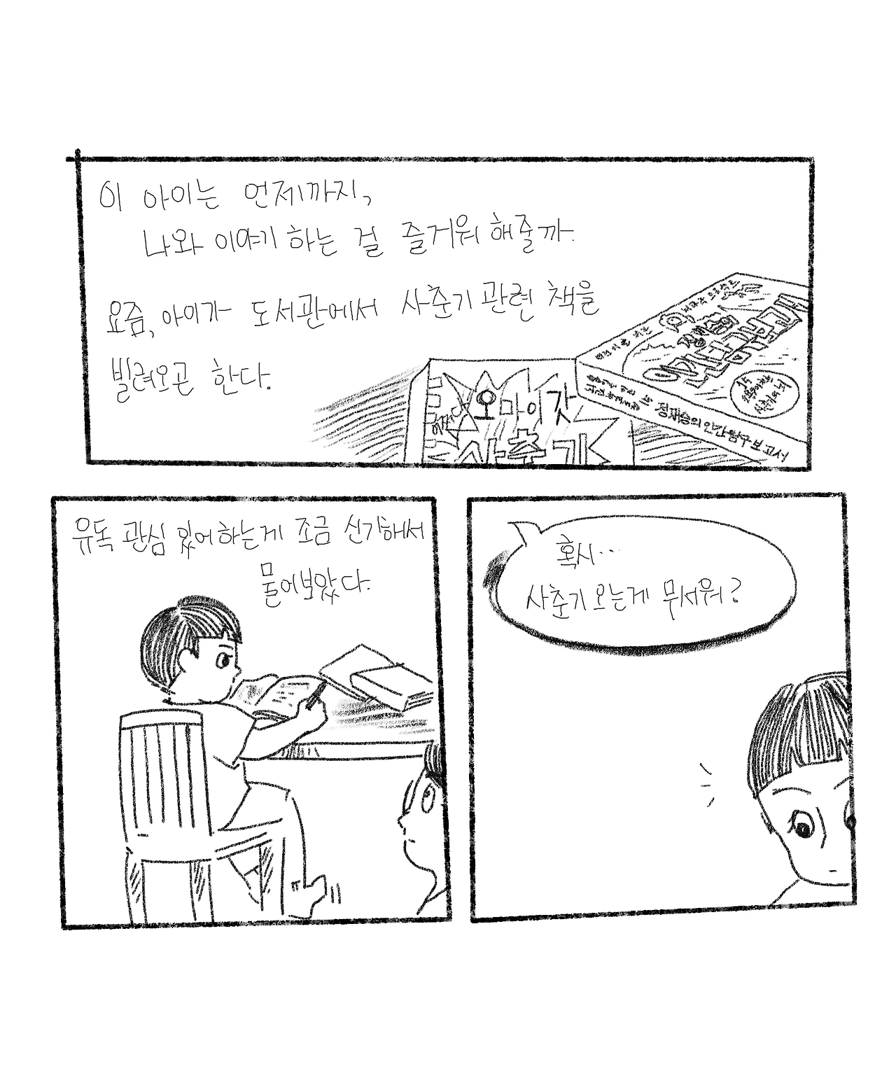 이쯤이면 슬슬 사춘기의 그림자가 비치기 시작하는 시기라고 합니다. 아직은 귀엽고, 여전히 재잘재잘한 말벗이지만 사춘기라는 문턱 앞에서 나도 조금은 긴장하게 됩니다.