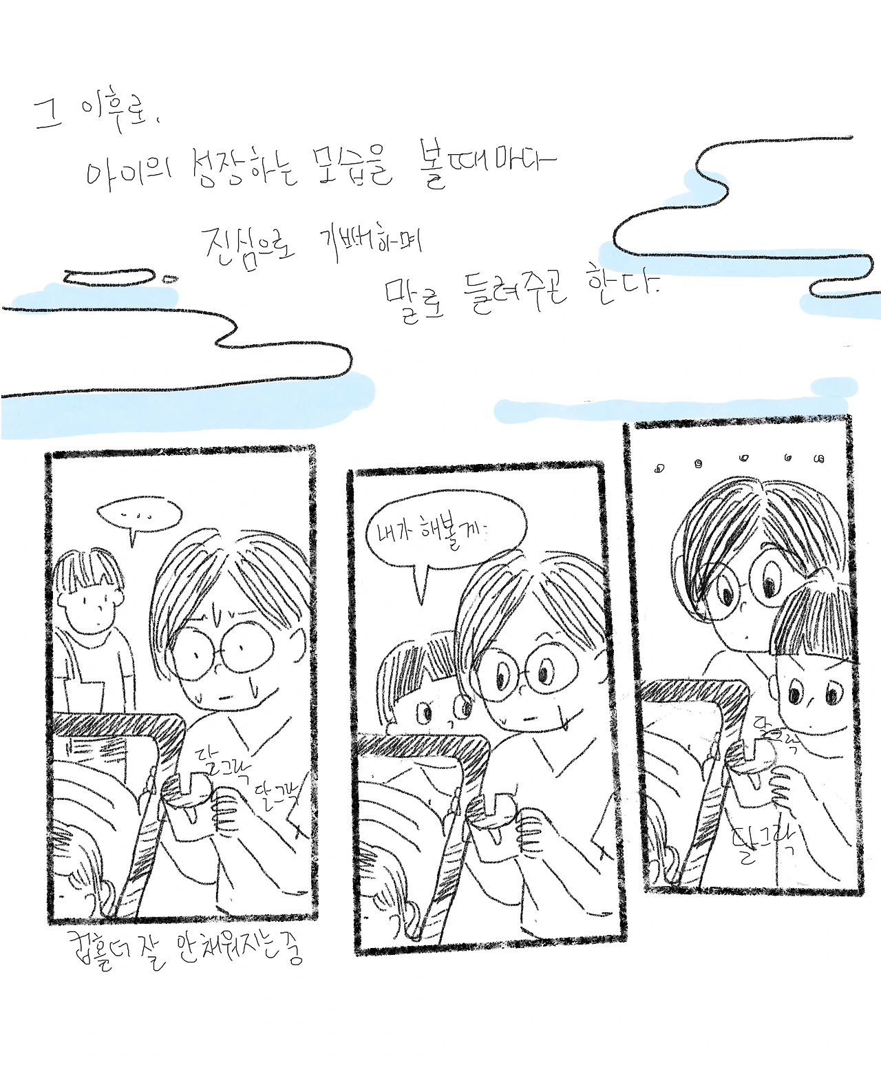 엉뚱한 말도 받아주고, 황당한 농담도 웃으며 들어주고, 아이가 원할 때는 진지한 얼굴로 맞장구를 쳐줍니다.