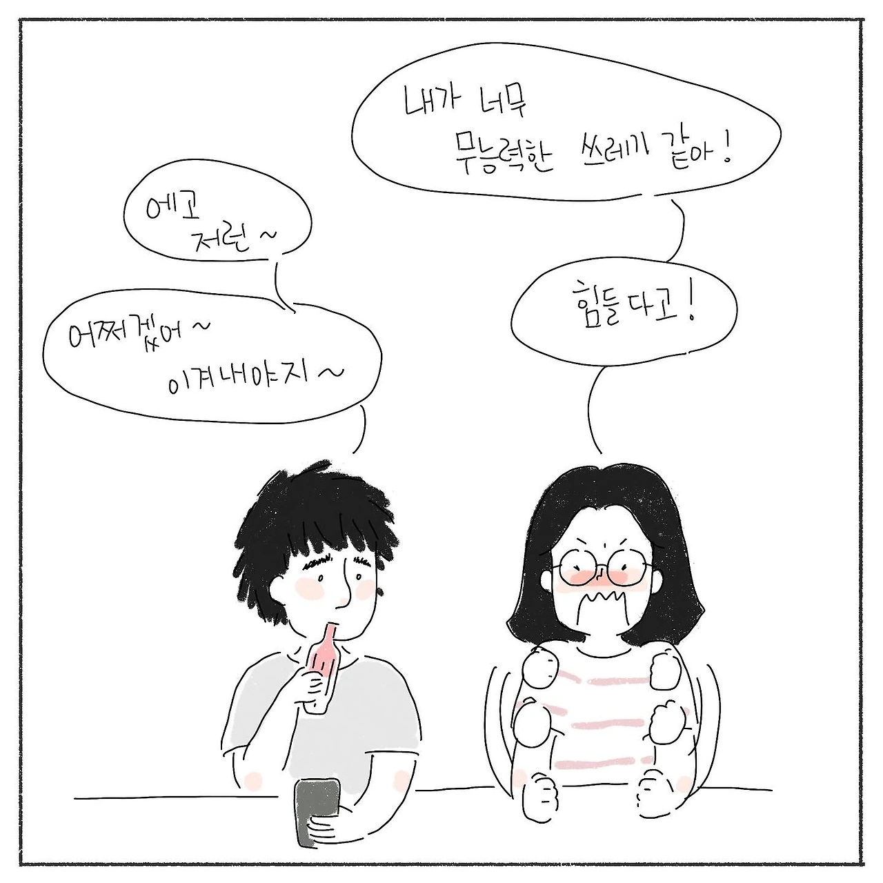 혼자 이 고통을 감내하는 것이 너무 억울할 지경이지만, 마음껏 투덜댈 수 있어 버티고 있는 것 같습니다.