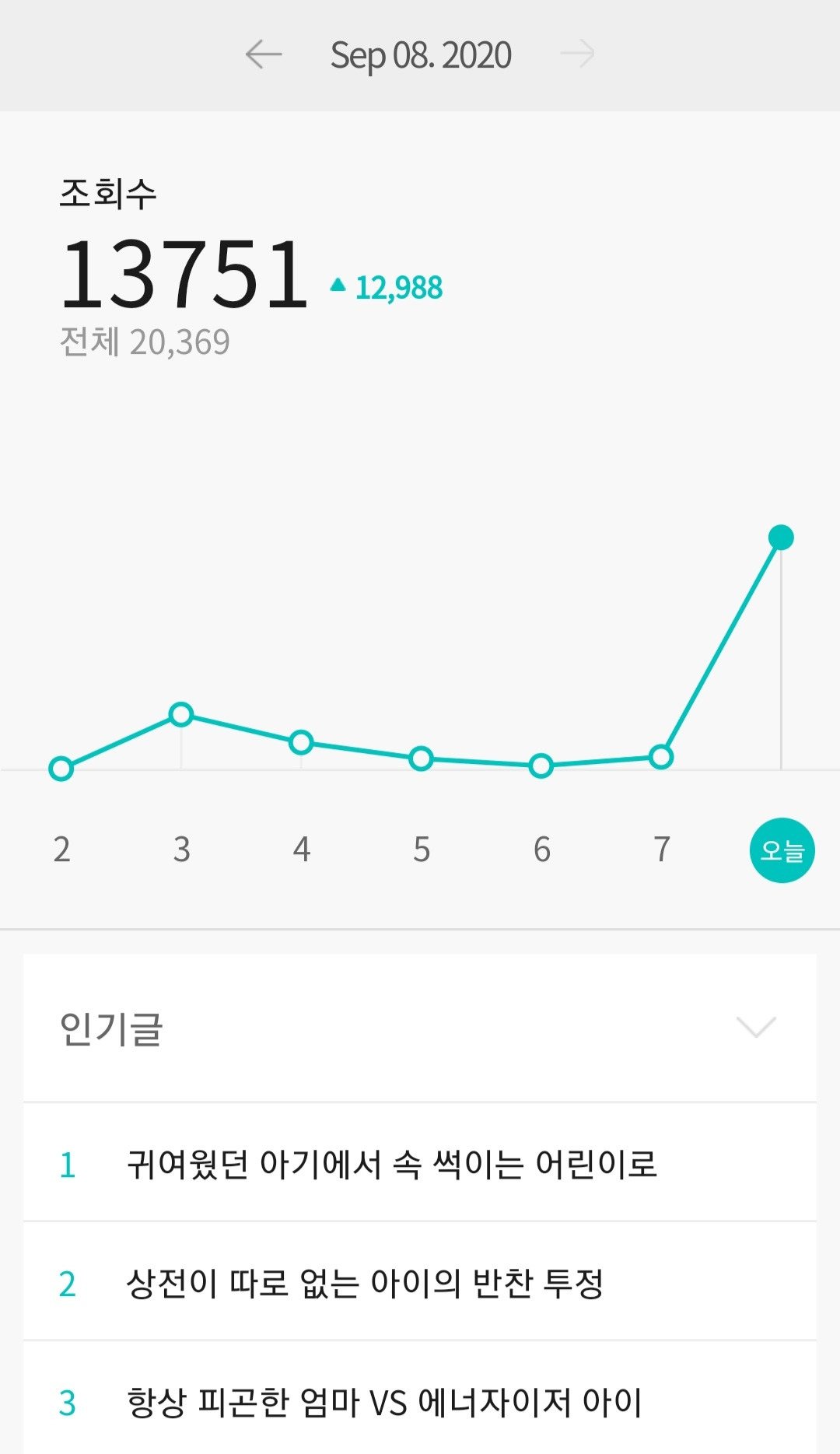 글을 잘 썼다기보다는 많은 엄마들이 공감할 만한 주제를 써서 메인에 노출된 것 같아요.
