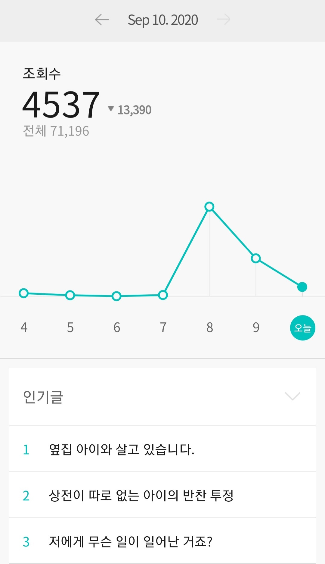 지금 코로나 사태로 가정 보육하시는 엄마들이 많을 것 같아요. 엄마들이 충분히 공감할 만한 제목이 조회 수에 상당수 차지했다고 봅니다.