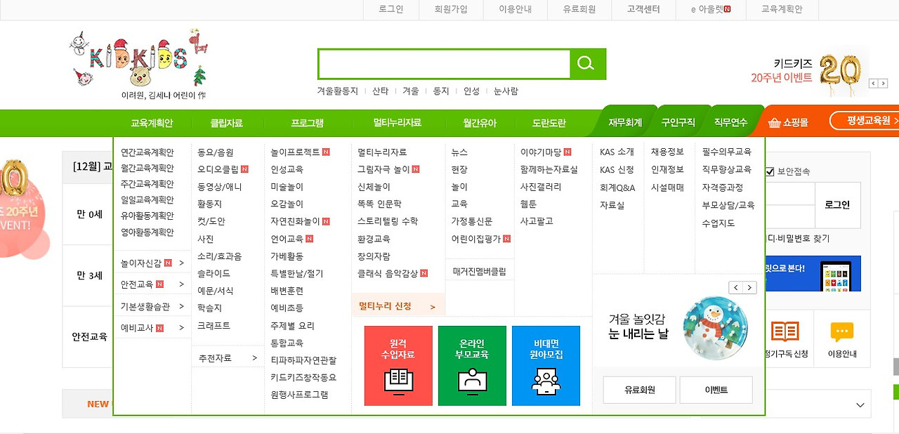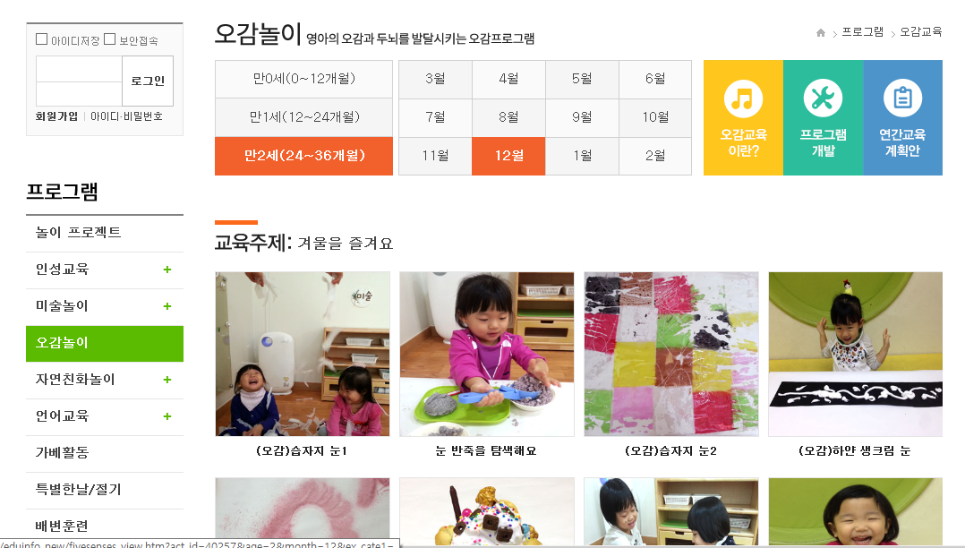어린이집, 유치원 선생님들이 계획안을 짤 때, 자주 이용하는 사이트예요. 아이들 연령별 교육 계획안이 잘 나와 있어요. 상단에 보면 프로그램이라는 카테고리가 있어요.