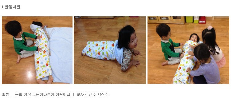 말린 아이에게 직접 풀어서 나오라고 말하며 몸으로 놀아주세요.