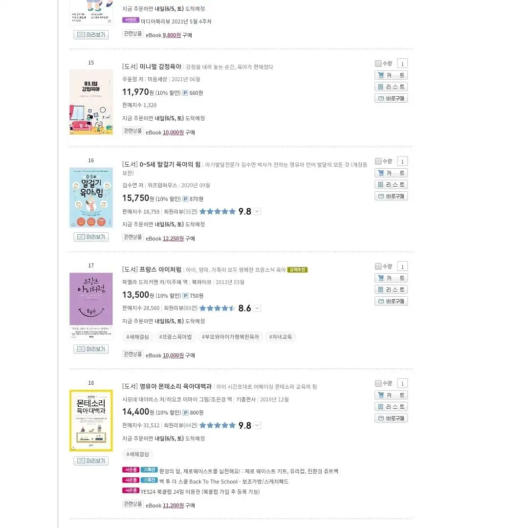 또 가끔씩 인기순으로 육아서를 쳐서 어떤 책이 요즘 인기가 있지 찾아봤었어요.