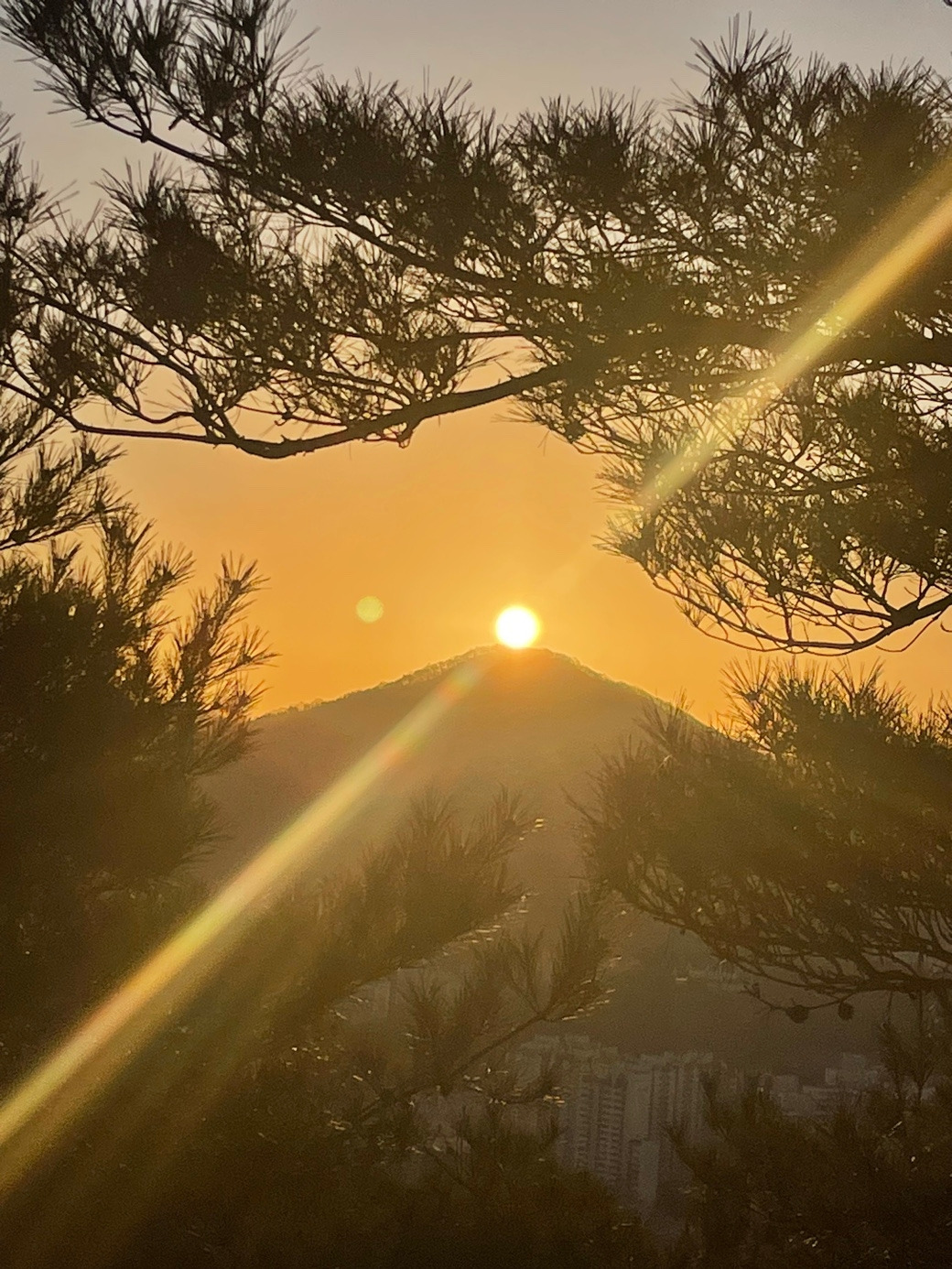 산 능선 위로 해가 완전히 떠오를 때, 태양은 세상을 정복한 왕처럼 당당했다.