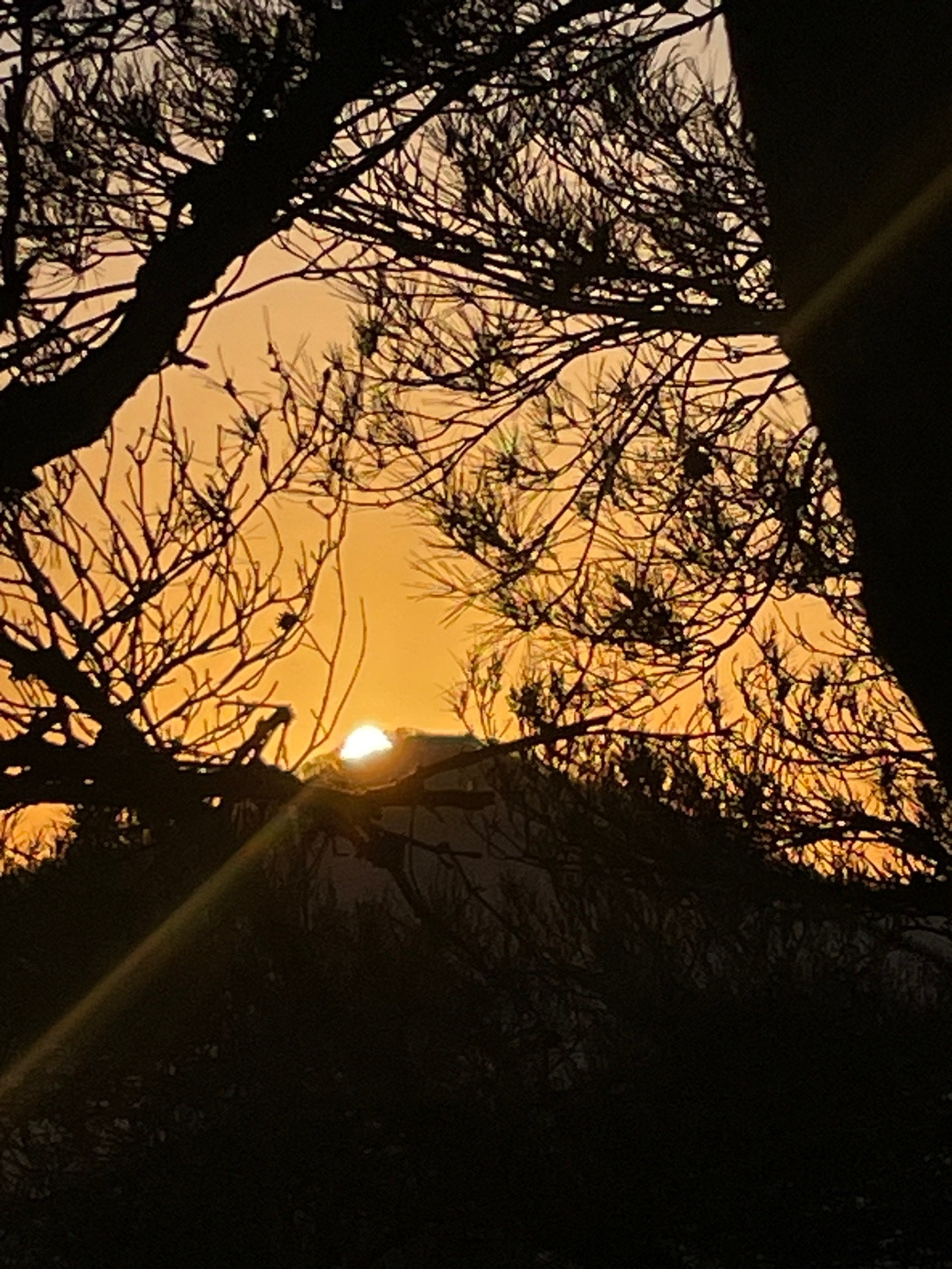 그 순간 산 능선 뒤에서 해가 환한 빛을 쏟아냈다.