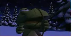어느 밤, 크롱이 밤하늘을 보고 있어요. 크롱은 달에 화살을 쏘아 갖는 상상을 해요.