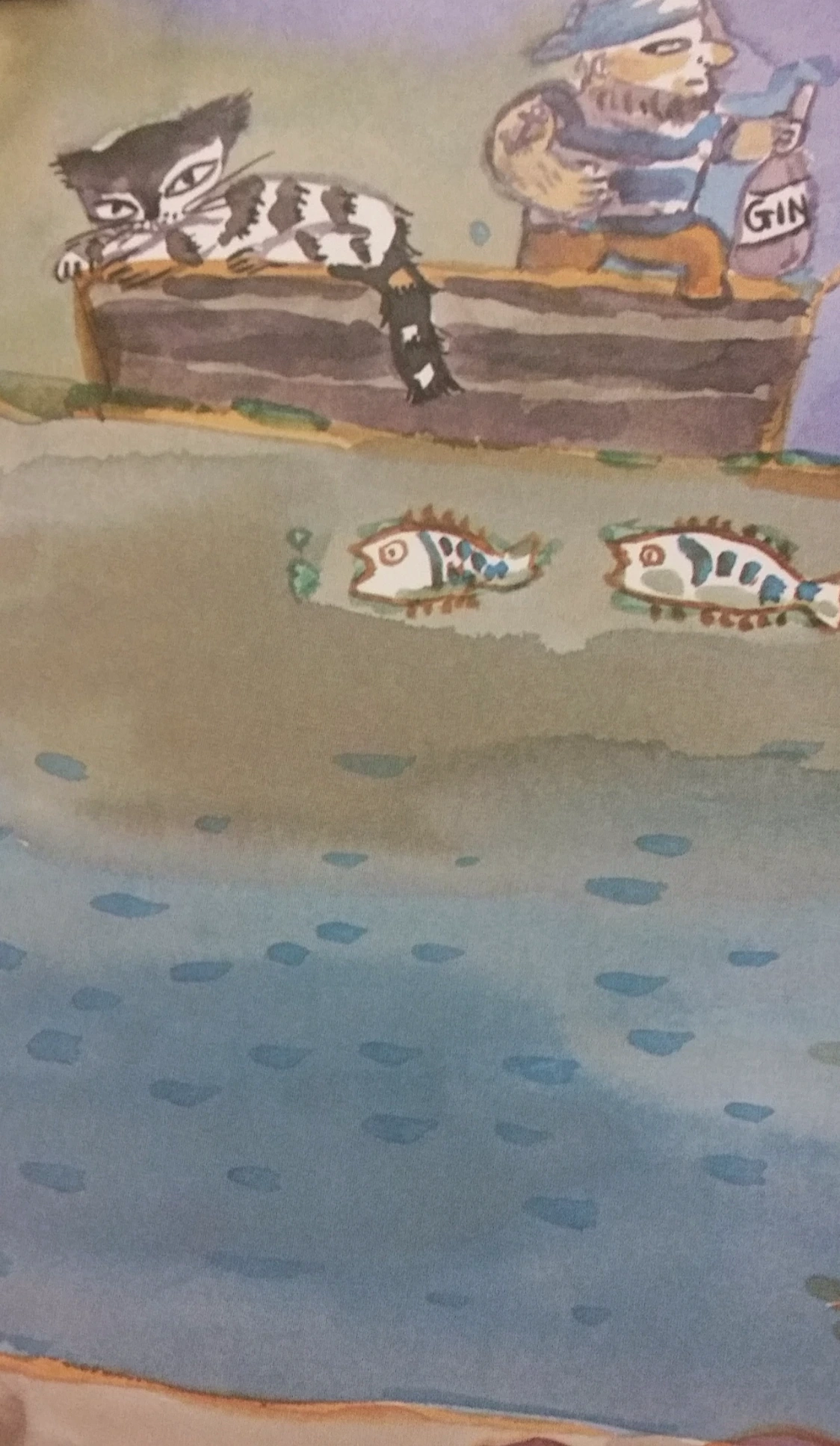 뱃사공과 함께 살 때, 고양이는 바다에서 떨어져 죽었다.