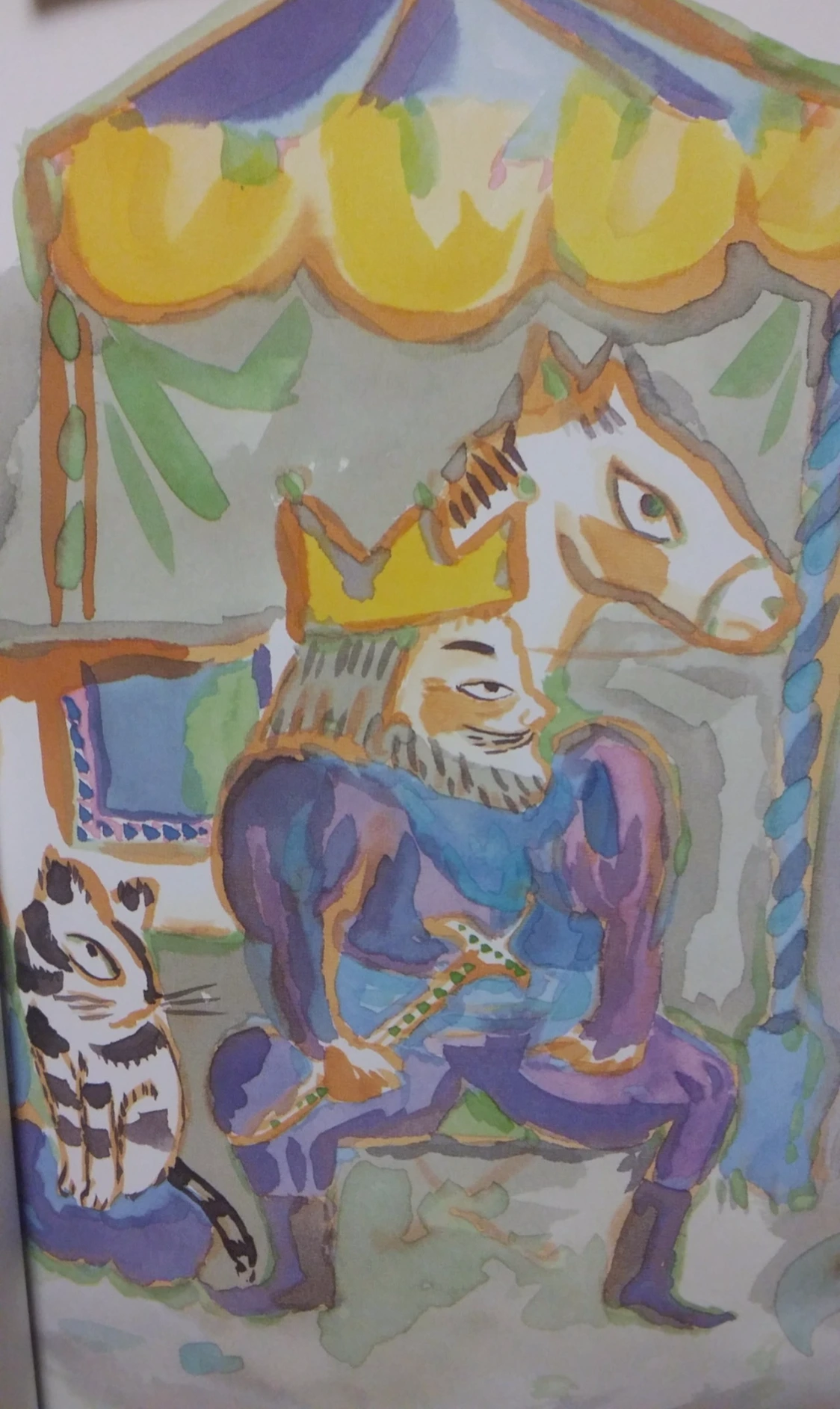 임금님과 함께 했을 때 고양이는 전쟁터에서 날아온 화살에 맞아 죽었다.